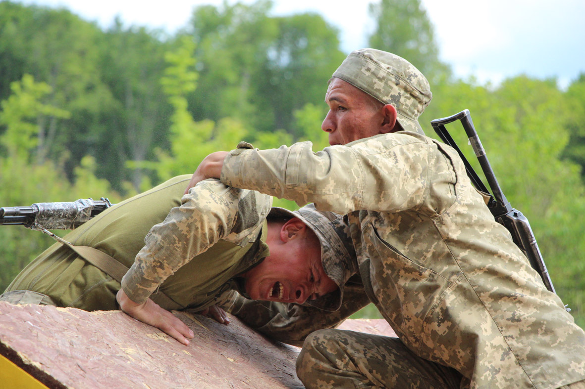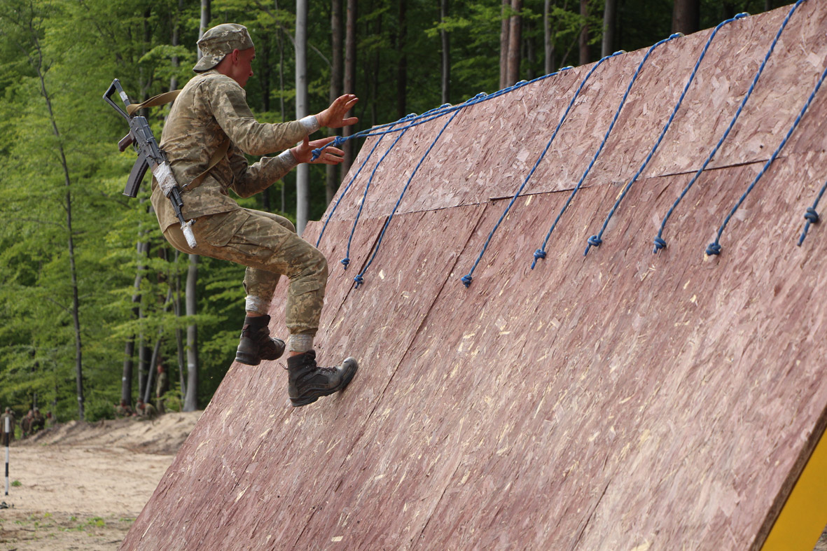 – Найважчими були висотні перешкоди. Мало на них піднятися, не менших фізичних сил вимагає і спуск. А коли вилізти на 6-метрову сітку й подивитися вниз – дух підпирає. А чого варта «Стіна»! На ній збився подих, стало боляче в легенях, ти піднімаєшся без страховки, всі м’язи напружені, і шукаєш рятівну руку товариша. Ледве вибираєшся, але відчуваєш такий кайф, що зумів подолати цю перепону, як, зрештою, всю смугу. Дуже класне тренування! – поділився курсант Ілля Бойко.