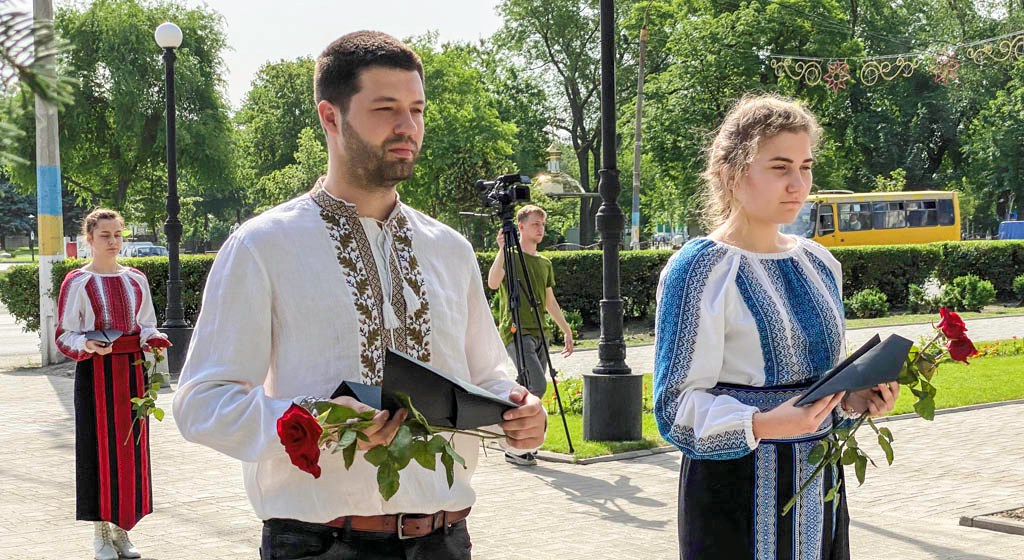 Учасники панахиди принесли із собою чорні паперові літаки та поклали троянди до меморіалу пам’яті павлоградців, які загинули захищаючи Україну від російської збройної агресії.