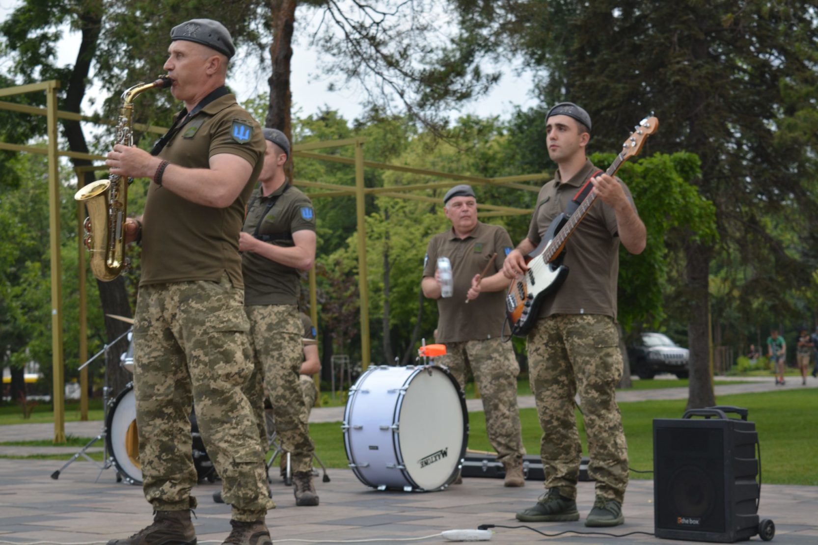 Оркестр окремої гірсько-штурмової бригади виступив з годинною музичною програмою на Театральній площі міста. Репертуар різноманітний – від українських патріотичних композицій до сучасних світових хітів.