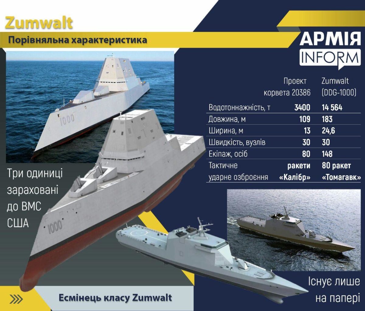 Ще на стадії проєктування есмінців типу Зумвольт (Zumwalt) американці вразили військово-морських експертів усього світу футуристичним зовнішнім виглядом корабля. На такий зухвалий крок Кремль не забарився дати «потужну» відповідь, анонсувавши власний проєкт 20386. Про «змагання» у кораблебудуванні «миролюбної» Росії з найпотужнішою країною в світі, читайте в АрміяInform.