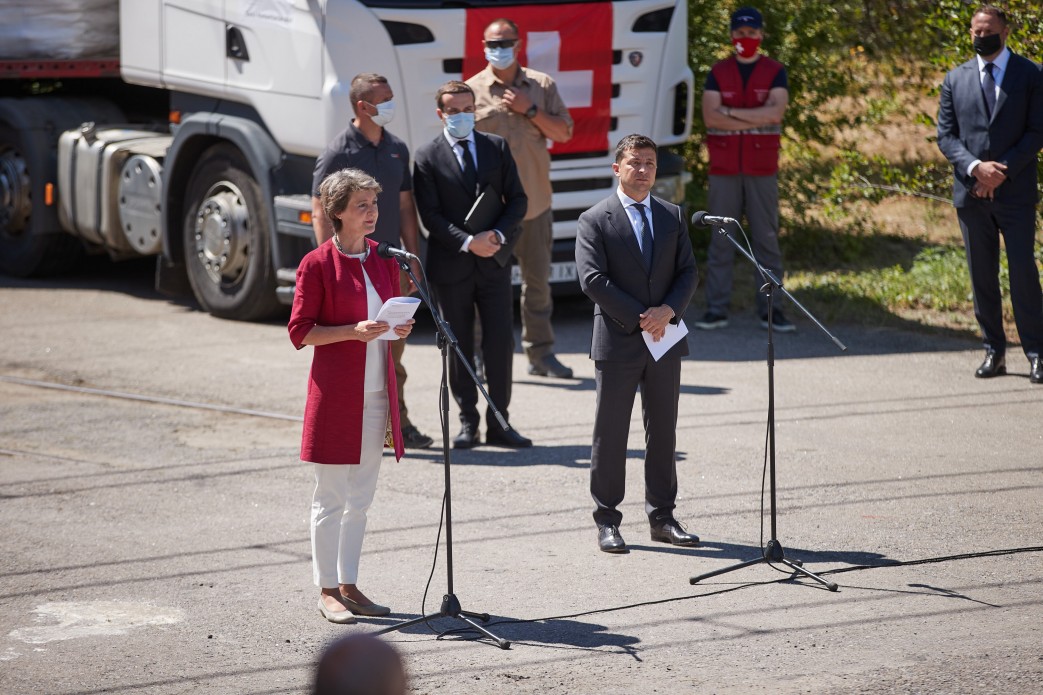 Зі свого боку Президент Швейцарії Симонетта Соммаруга подякувала Президентові Володимиру Зеленському та українському уряду за те, що Швейцарія може доставляти гуманітарну допомогу у райони Донбасу, непідконтрольні Україні. «Це показує вашу відданість гуманітарним принципам та розуміння потреб людей у цьому регіоні», – наголосила Симонетта Соммаруга.