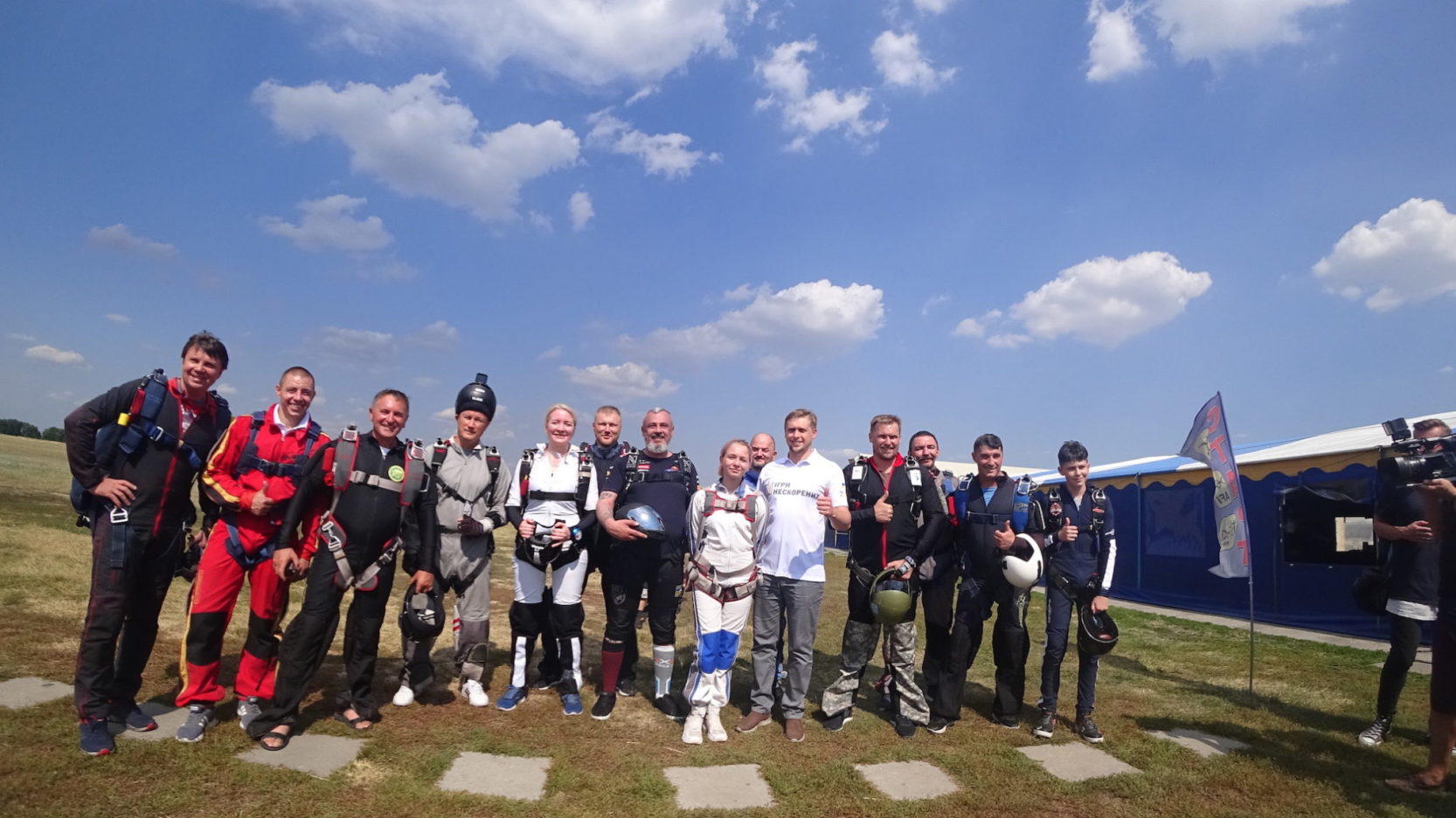 Кульмінацією стали стрибки з парашутом. Загалом у небо піднялись три групи по п’ять парашутистів з інструкторами. Стрибали з висоти 4200 метрів з парашутом-«крилом».
