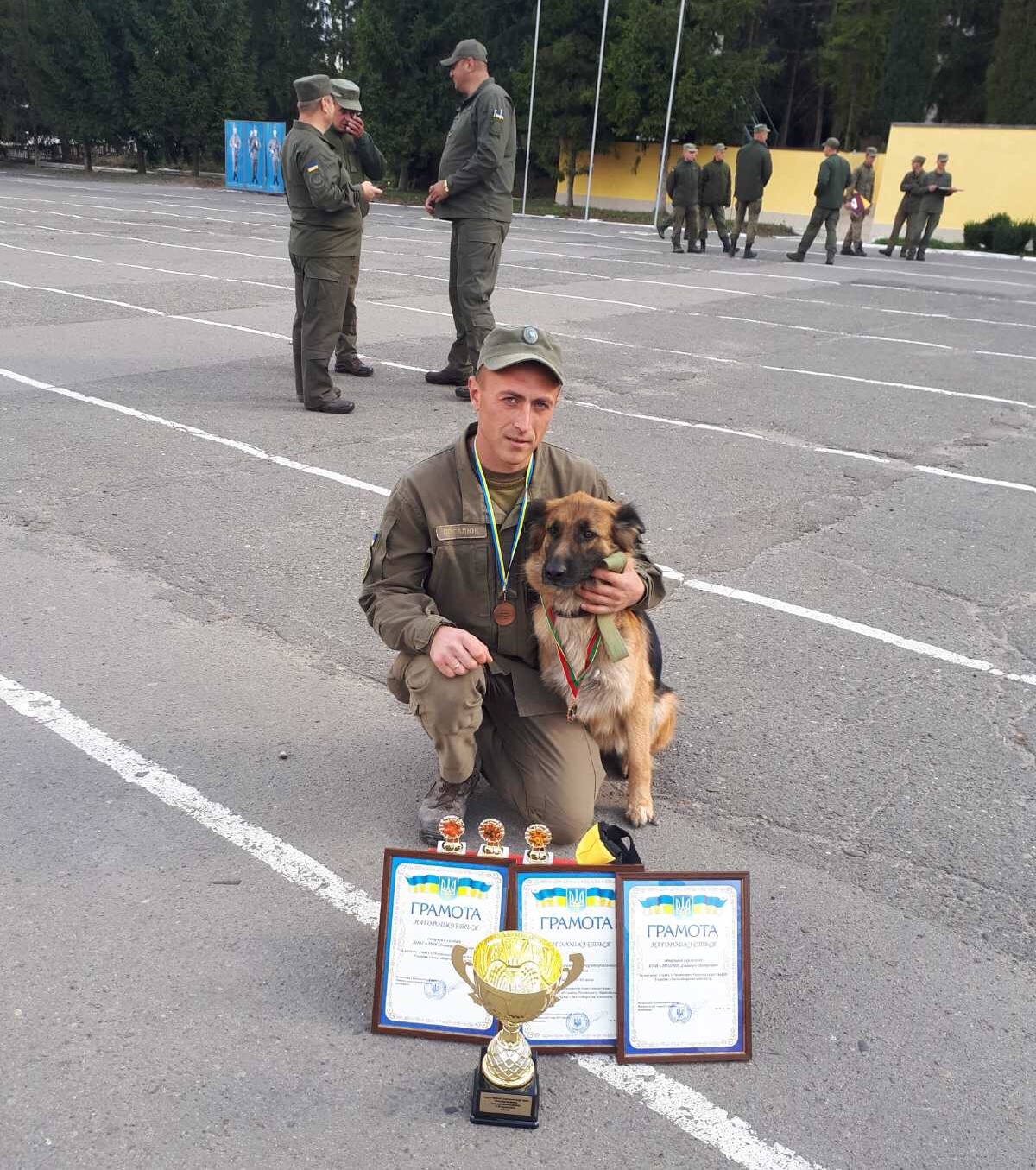 – На 5-денних змаганнях у Золочеві серед 30 учасників з усіх куточків України торік Арлана отримала медаль «За сумлінну службу» ІІ ступеня. На цих змаганнях проводили перевірку спеціального і загального курсу дресирування, яке включає прийоми, що використовує кінолог під час несення бойової служби. Змагання записують на відео і судді з начальником кінологічної служби Головного управління Національної гвардії України та головним суддею чемпіонату полковником Тарасом Боритою визначають переможця, – розповідає Дмитро Довгалюк.
