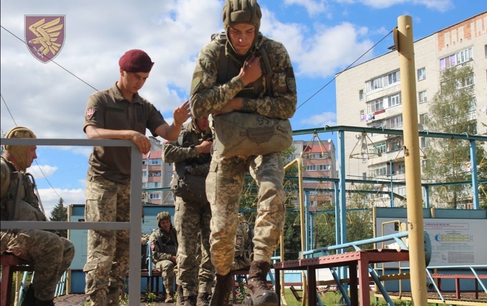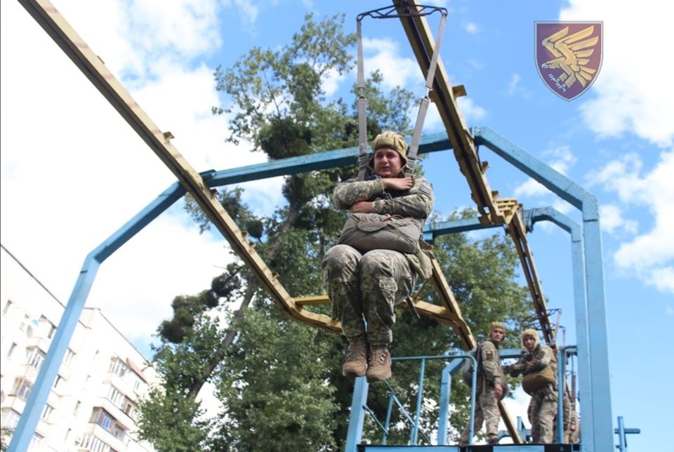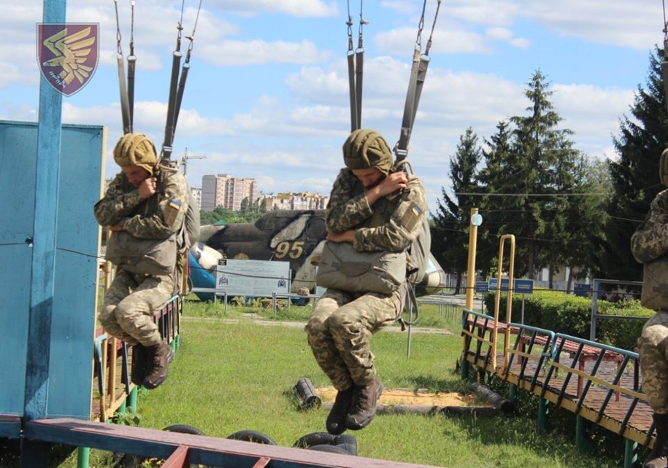 Перш ніж виконати свій перший стрибок з парашутом кожен новоприбулий військовослужбовець десантно-штурмової бригади Збройних Сил України проходять курс повітрянодесантної підготовки.