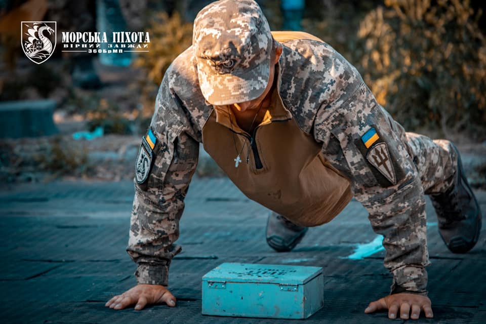 – Кросфіт – методика фітнесу, створена Ґреґом Ґласманом у 2000 році. Це програма вправ на силу і витривалість, до складу якої входять елементи високоінтенсивного інтервального тренування, важкої атлетики, пауерліфтингу, зарядки та інші вправи. Бригада морської піхоти постійно залучається до виконання завдань у район операції Об’єднаних сил. У разі відсутності тренажерних залів чи спортивних майданчиків, морпіхи займаються кросфітом так, як його програма пристосована саме для тренувань за допомогою підручних засобів, – розповів старший помічник відділу підготовки майор Олександр Одегов.