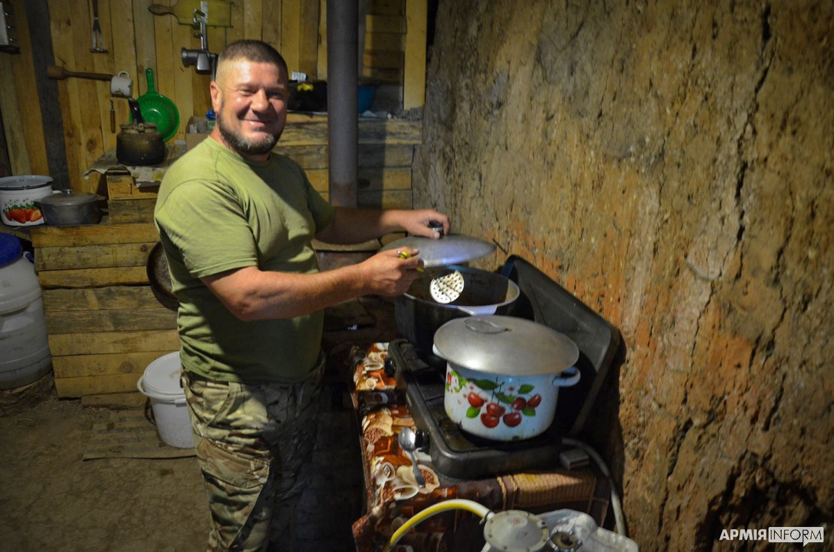 У вільний від несення служби час морпіхи приводять до ладу свої побутові приміщення, готують їх до зими, займаються спортом. На кухні хазяйнує молодший сержант Юрій. До війни він працював трактористом, а нині водій БТР-80. Він полюбляє готувати, тож часто його товариші смакують голубцями та варениками. А ще дуже смачно він коптить м’ясо. І хоча на передовій він уже відзначив своє 46-річчя, поки ще не збирається додому. – В мене п’ятеро дітей і троє онуків, тому моя мрія зупинити війну на цьому рубежі.