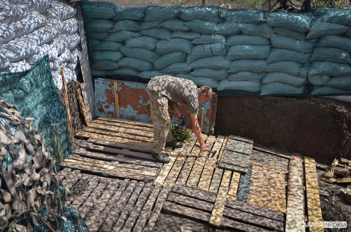 Що стосується наших позицій, то вони обладнані всім необхідним для ведення бойових дій і забезпечення безпеки особового складу. Рухаючись ходами сполучення, звернули увагу на розгалужену систему оборони: глибокі окопи повного профілю. Від однієї позиції до іншої прориті траншеї. У разі обстрілу можна таємно переміщатися від однієї вогневої точки до іншої.