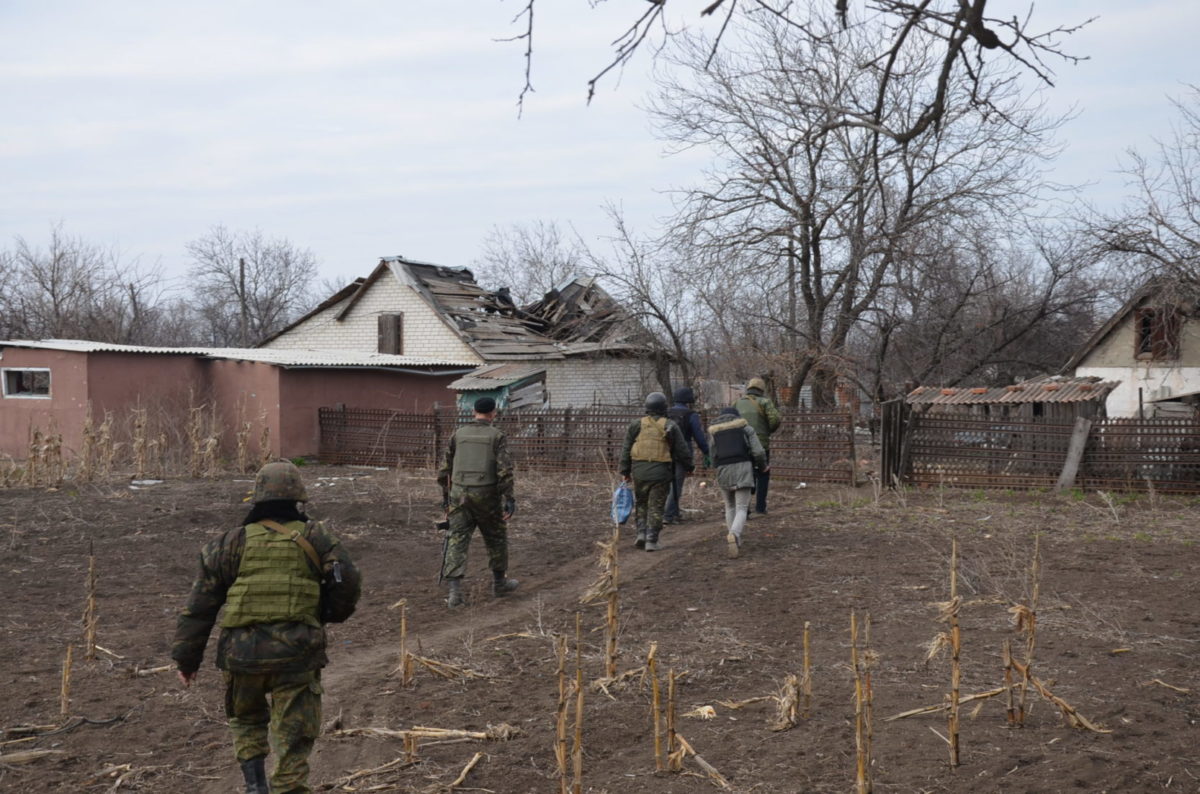 «Слава Богу, ми знали про існування баби Нюри, за можливості їй допомагали. Окрім неї, у всіх Пісках нема зараз, мабуть, жодної цивільної душі. Бойовички два тижні тому перепилися, закортіло їм по нас постріляти. Приціл взяли нетверезо, постріли з автоматичного гранатомета перелетіли через наші голови метрів за триста. Кілька гранат впало на бабине подвір’я. Чуємо – собаки, які сюди прибилися, скавчать. Прибігли посеред затишшя, а стара біля паркану лежить непритомна, поряд з убитим осколком собакою. А ми до неї звикли, як до рідної…»