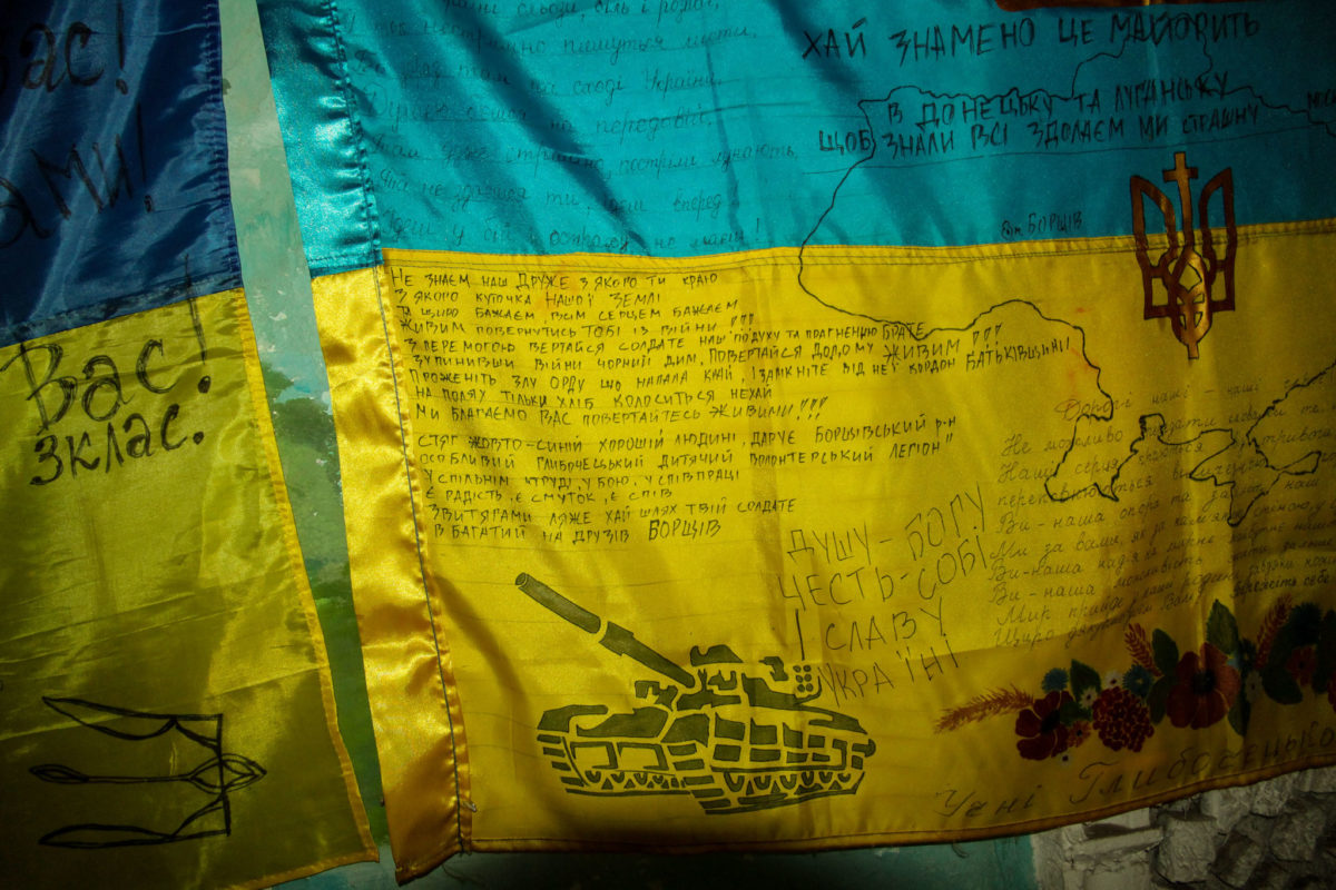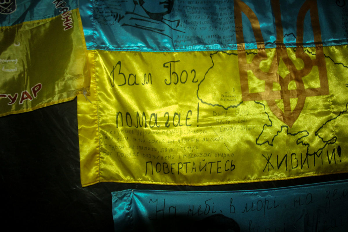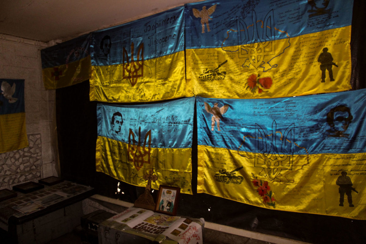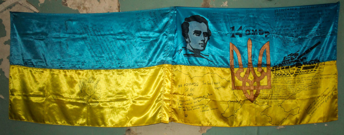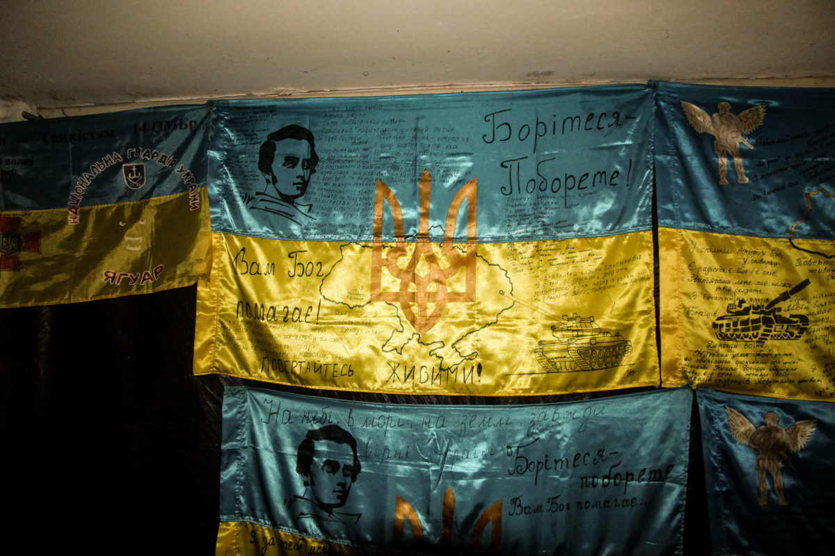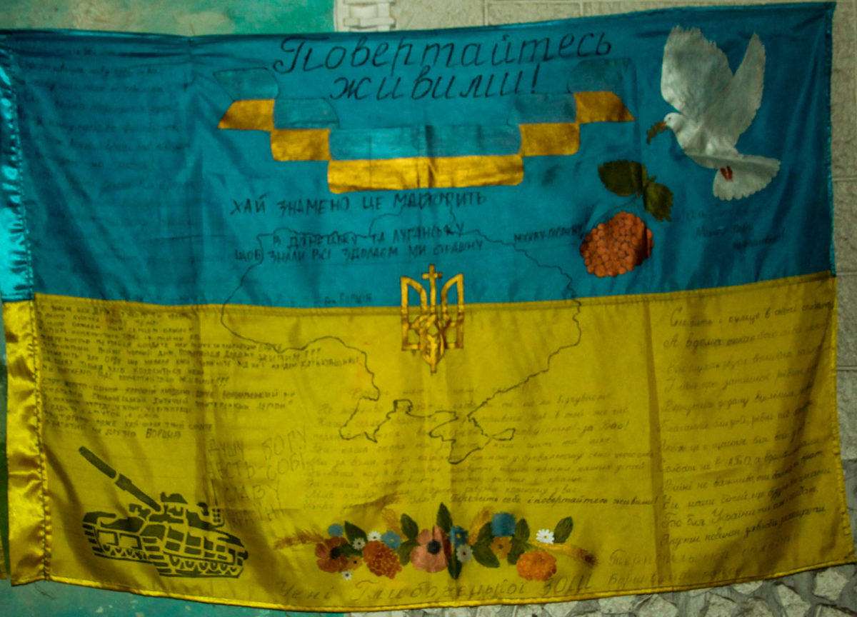 Звичайні двері звичайного військового розташування звичайних вояків неподалік лінії зіткнення… Але за цими дверима у батальйоні, який очолює підполковник Сергій Корсун, зберігається чи не найбільший скарб. Ні, двері не зачинено на великий замок, і тут не чатує вартовий. Навпаки –сюди може, а іноді й мусить, зайти кожен військовослужбовець батальйону. Річ у тім, що куди б не поїхав батальйон, із підрозділом переїжджає і його колекція бойових прапорів. Це не ті прапори, які почесно вручають посадовці. Це синьо-жовті знамена, що пройшли з воїнами підрозділу крізь пекельні бої. І в цьому їхня особлива цінність. Адже із бойовими стягами наші захисники йшли на смерть заради незалежності України.