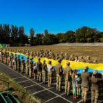 – Знаєте, дуже символічно, що ми в такі дні всі ділимось радістю один з одним, – каже майор медичної служби Богдан Петренко. – А коли ми всі разом тримали наш Прапор… Це ж немов разом тримати на руках Україну. Це вкотре показує: ми разом, а отже – непереможні!