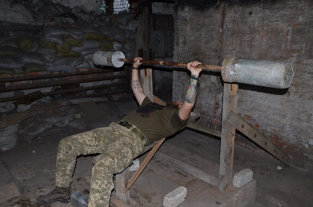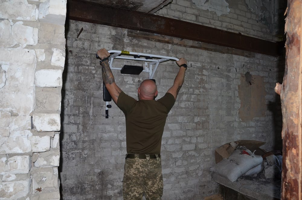 – У нас є всі умови, щоб не тільки пильно нести службу, а й готувати тіло і дух до різних випробувань. Навіть зробили спортзал у зруйнованій будівлі, – долучається до розмови головний сержант Олег. – Солдат має бути сильним всебічно, тоді йому легше адаптуватися в бойовій обстановці.