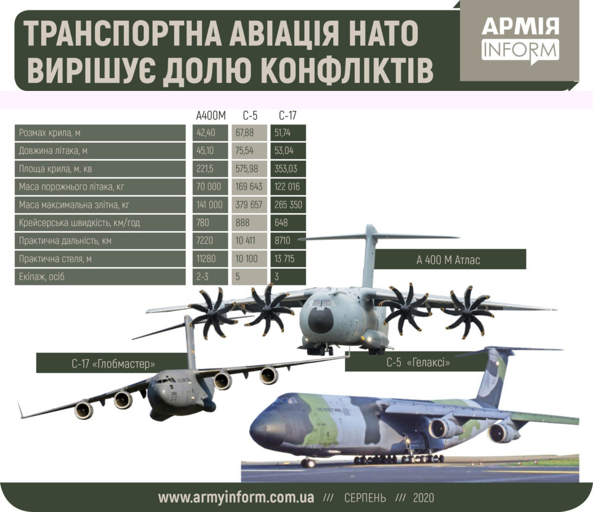 Під час операцій на віддалених театрах військових дій застосовують не лише бойову авіацію. Важливу роль відіграє і транспортна авіація. Про основні стратегічні військово-транспортні літаки НАТО розповідає АрміяInform.