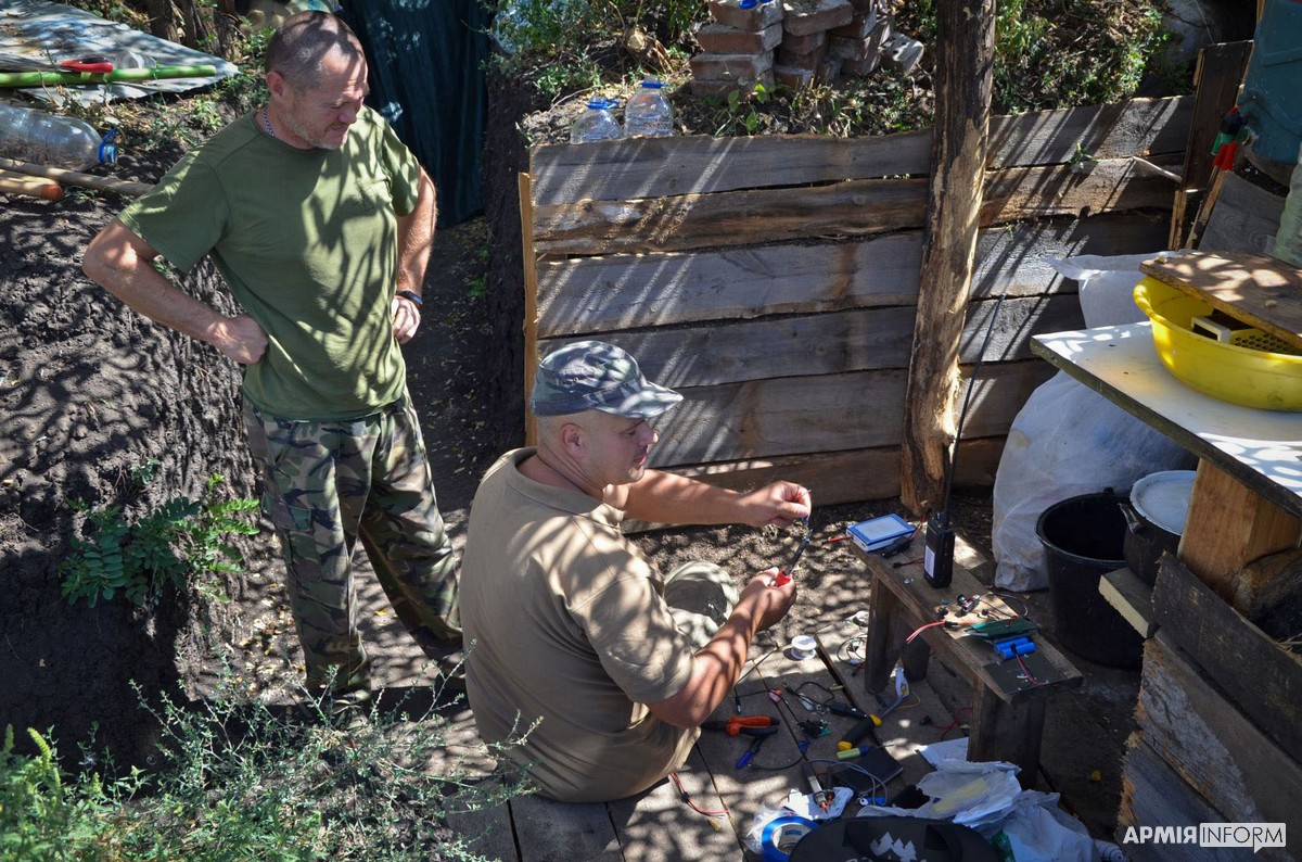 — Може і мої предки теж були французами, — з усмішкою каже Сергій. — На війні я з 2014 року. Спочатку був на Луганщині. Приймав участь у бойових діях під Кримським, Троїцьким, на Світлодарській дузі. Зараз тут. Дуже насторожує тиша та нахабство ворога. Явно вони щось замислюють. Вчора ми вдруге за останній тиждень зафіксували проліт над нашими позиціями їхнього безпілотника. Намагаємося теж не гаяти часу. Готуємо зброю, укріплюємо наші бліндажі, ходи сполучень, покращуємо побутові умови життя на передовій. Нещодавно за допомогою волонтерів придбали сонячні батареї, завдяки яким оперативно вирішуємо питання заряджання акумуляторів, рацій, мобільних телефонів, освітлення бліндажа.