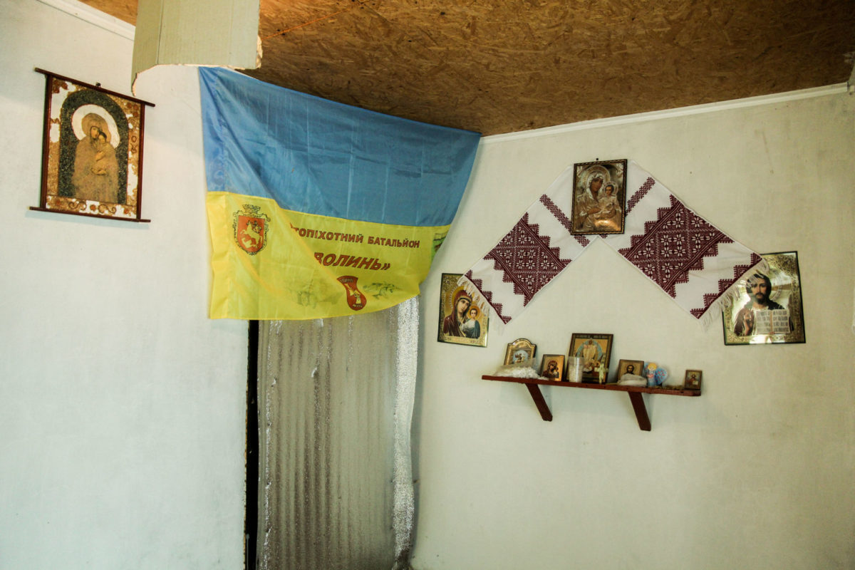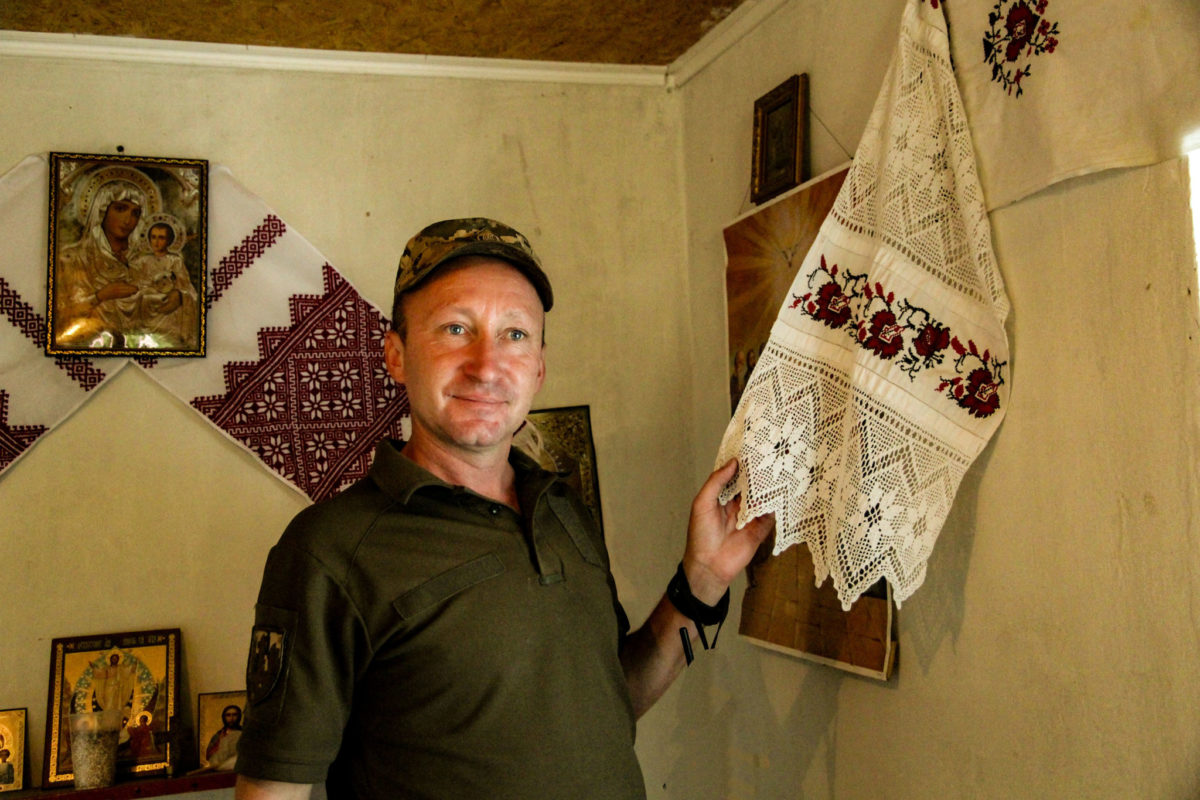 З першого погляду це звичайна похідна капличка: великий Державний Прапор України, ікони, свічки, кілька вервечок… Проте воїни одного з батальйонів, якінині тримають нашу оборону неподалік населеного пункту Трьохізбенка, знають: їхня каплиця має кілька надзвичайно сильних реліквій, які вже стали своєрідними оберегами цього підрозділу. Перша з них— це так званий тиновий рушник. Його бійці підрозділу свого часу врятували з хати, що палала через влучання російської міни. Тоді наші хлопці допомагали господарям рятувати майно. Люди поїхали, забравши з собою всі врятовані речі, а от цей рушник залишився лежати на згарищі.