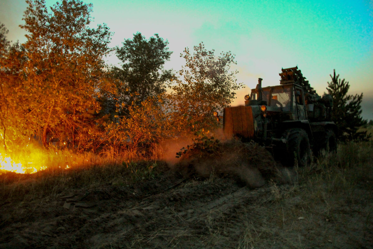 — Ми приїхали, як тільки отримали сигнал, — каже водій полкової землерийної машини Олег. — Відразу провели обваловку ділянок, що вже палали.