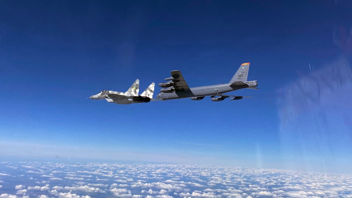 Близько опівдні літаки наблизились до українського повітряного простору. На кордоні бомбардувальників США зустріли винищувачі бригад тактичної авіації Повітряних Сил Збройних Сил України Су-27 та МіГ-29. Українські військові льотчики перехопили естафету в польських колег на F-16 і забезпечили супровід через усю територію України від західного кордону до узбережжя Азовського моря та у зворотному напрямку.