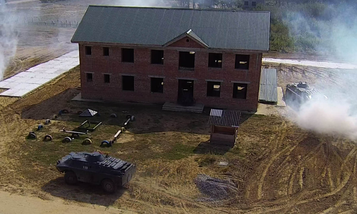 Слід зазначити, що навчальна ділянка «Бій у місті» – це справжнє місто у мініатюрі. Тут є одно-, дво- та триповерхові житлові споруди, є будівлі адміністративного призначення, є виробничі цехи, церква і ціла мережа підземних комунікацій. Така різноманітність необхідна для того, аби військовослужбовці навчились діяти у різних типах споруд, звикли правильно пересуватись, прикривати один одного та завчасно виявляти ворожі засідки.