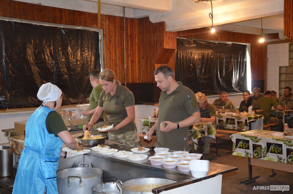 Доволі часто буваючи в різних частинах, які знаходяться в районі проведення ООС, звернули увагу на високий рівень організації харчування саме в цій механізованій бригаді. Тут серйозно підходять не тільки до якості приготування їжі, але і побутових умов. У обладнаному для прийому їжі приміщенні – світло, чисто і просторо. Стіни їдальні оформлені в національному колориті. Військовослужбовці без поспіху підходять до столу і вибирають необхідні їм до смаку страви. Крім основних страв, є різноманітні салати зі свіжих овочів, фрукти, йогурти, випічка, соки. Порції чималі, при необхідності кожен може отримати добавку. На кожному столі, крім традиційних солі, перцю, є гірчиця, кетчуп, майонез, згущене молоко. Приготуванням їжі займаються два штатних кухаря, старші солдати Наталя і Тетяна. Судячи з того, з яким апетитом воїни їдять приготовані ними страви і щиро дякують жінкам-кухарям, їм все подобається.