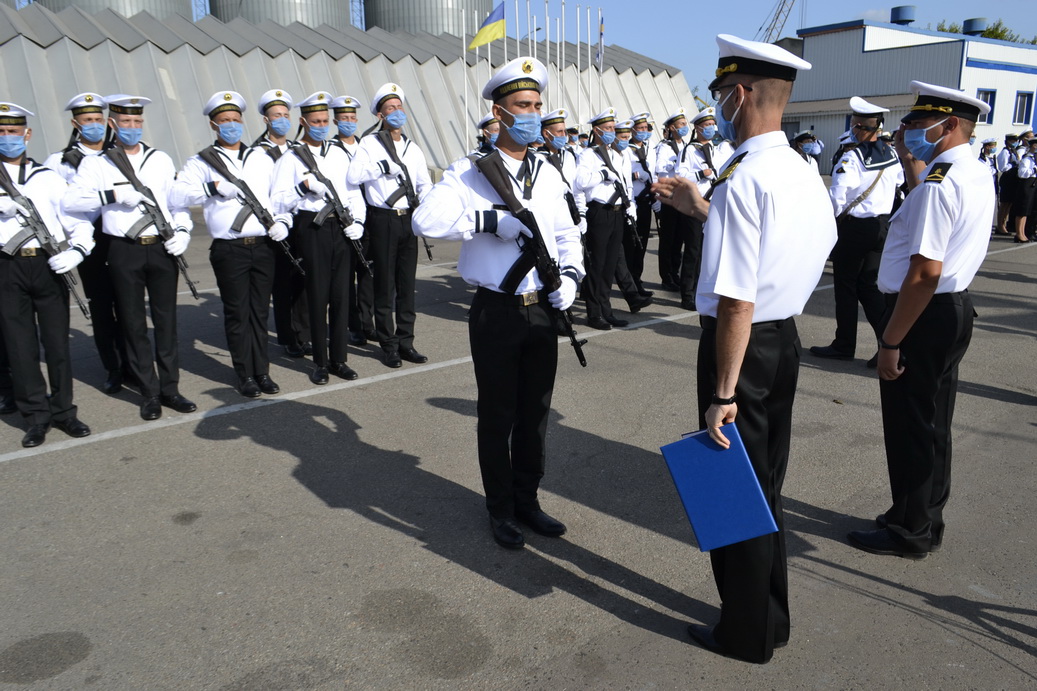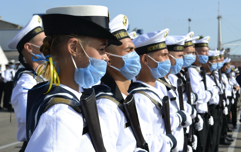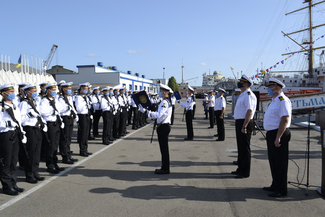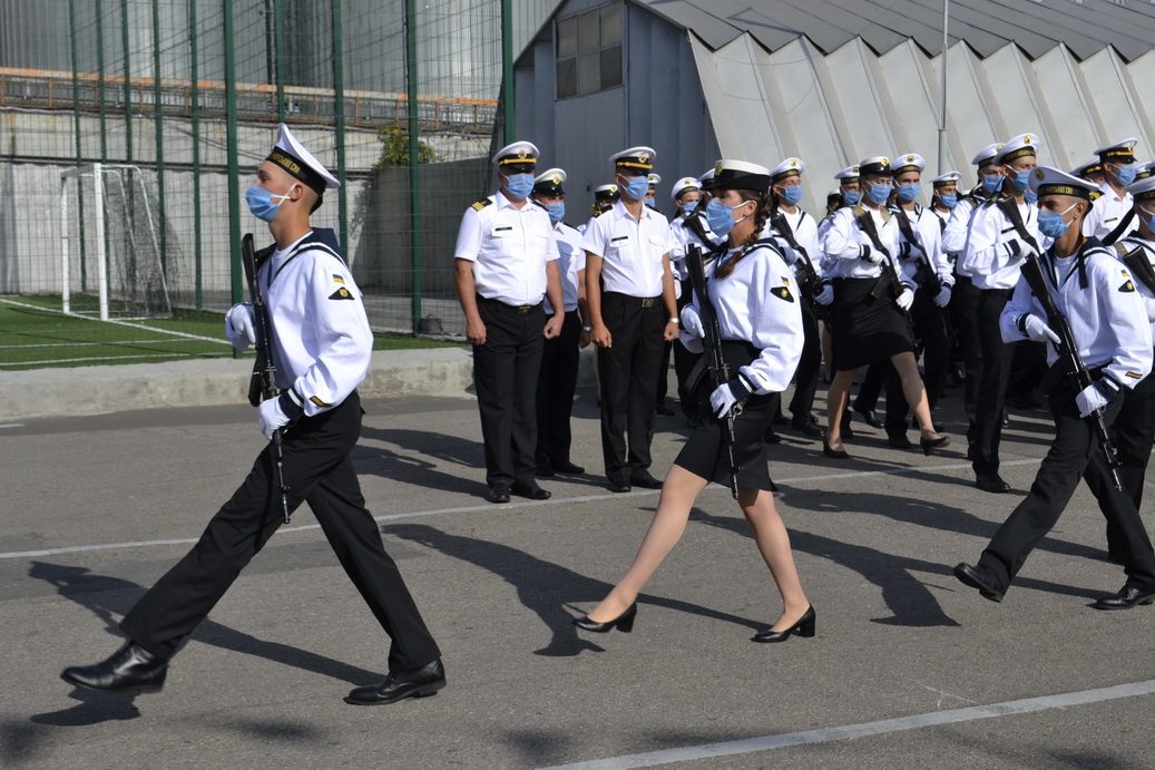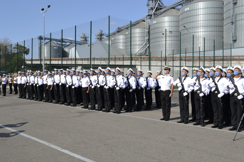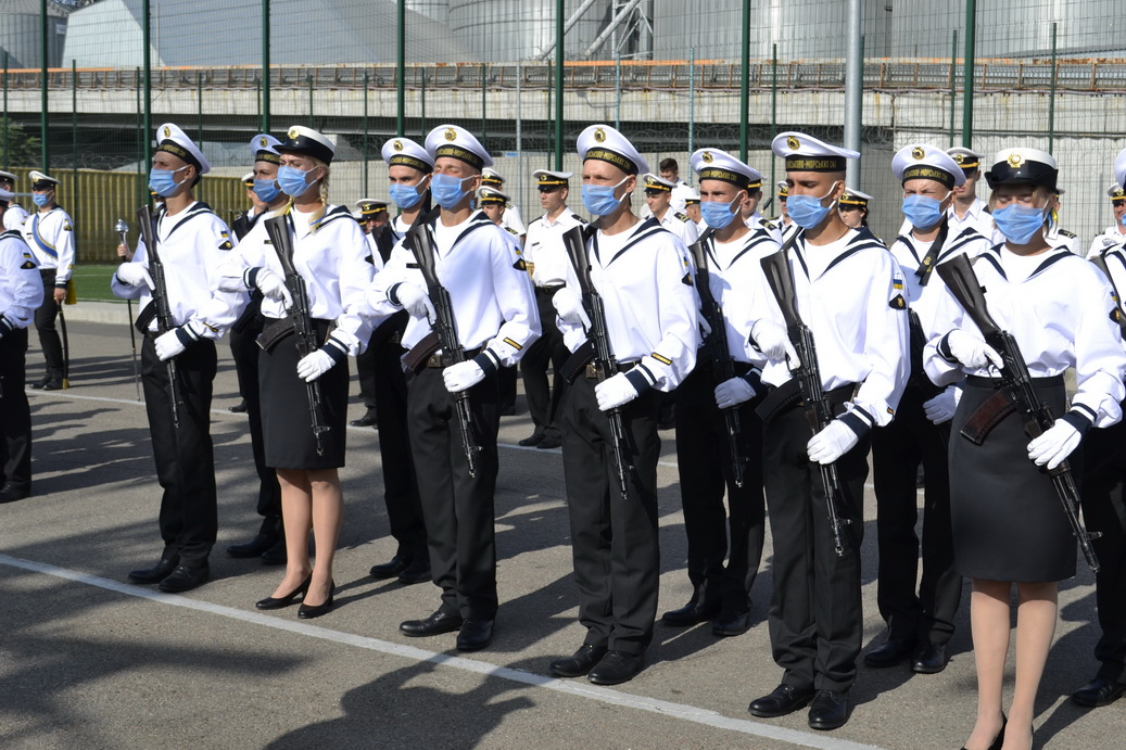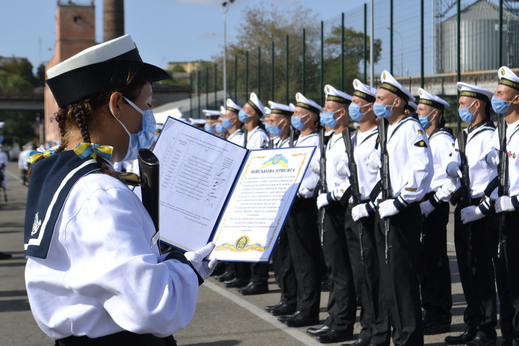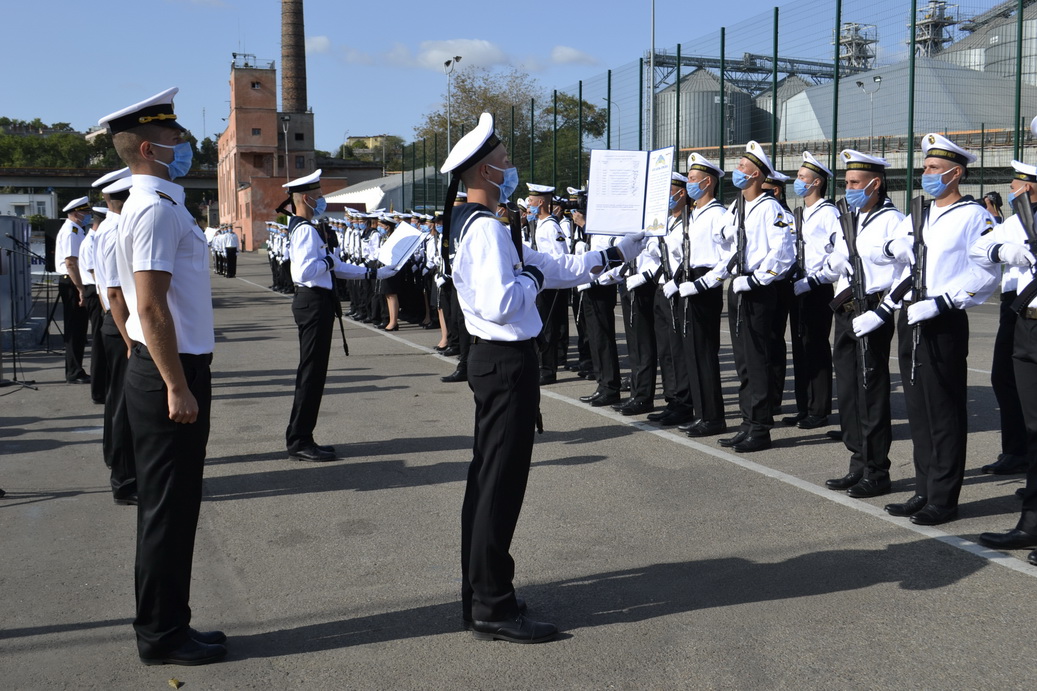 Близько ста курсантів Інституту ВМС та Відділення військової підготовки морехідного коледжу технічного флоту Національного університету «Одеська морська академія» набору 2020 року склали Військову присягу на вірність українському народові. Як і торік, пліч-о-пліч із хлопцями стоять дівчата.