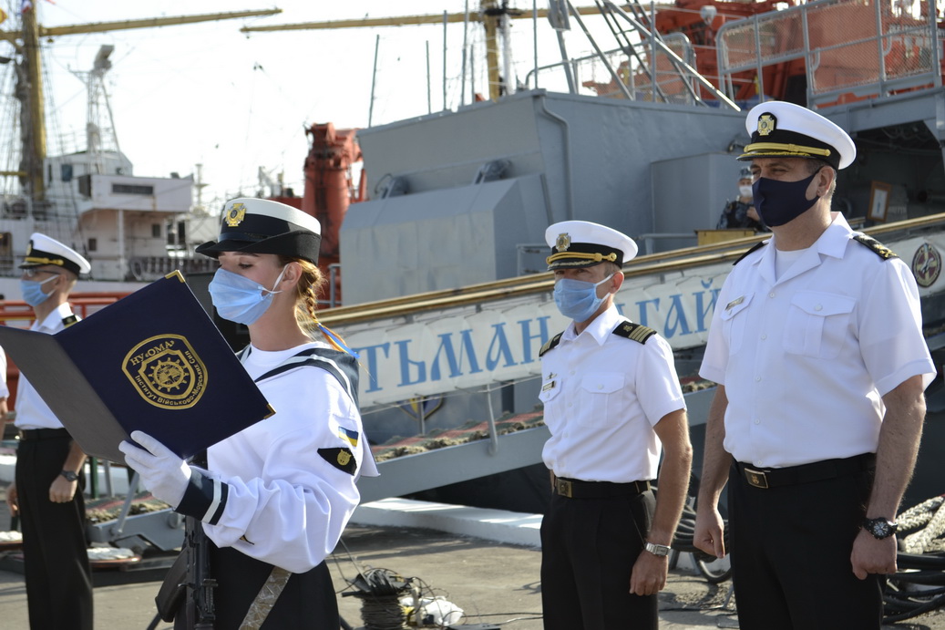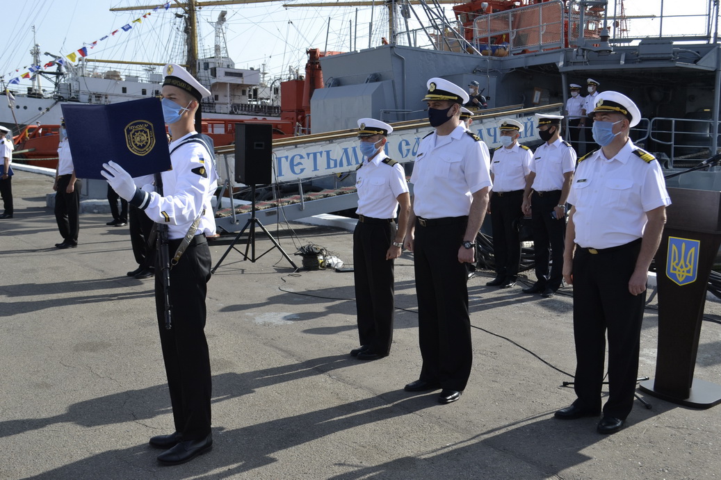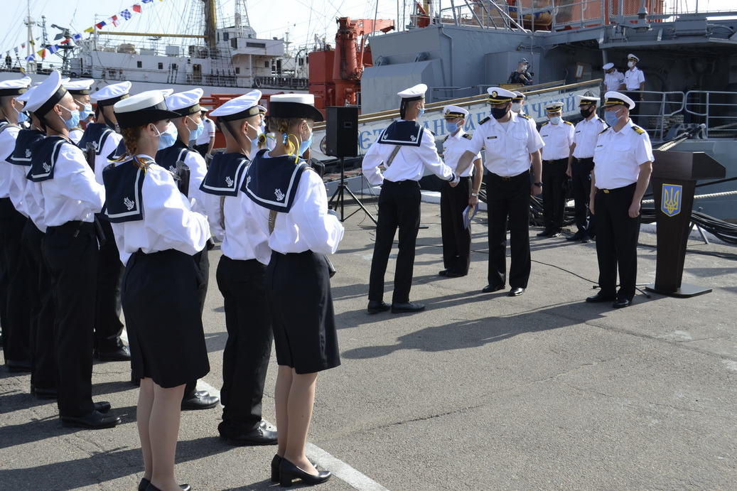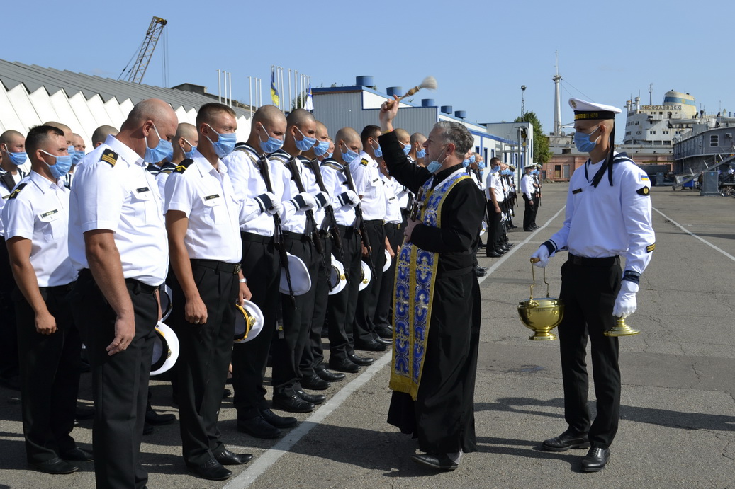 Урочистий ритуал проведено на причалі Практичної гавані, безпосередньо біля бойових кораблів і катерів ВМС України за участі представників Командування Військово-Морських Сил ЗС України та духовенства. На жаль, через карантинні обмеження рідні та друзі курсантів не змогли бути присутніми на заході.