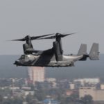Сьогодні над Києвом пролетіли американські військові конвертоплани Bell V-22 Osprey.  Летіли – низько, тож журналісти та поціновувачі авіації встигли зафільмувати ефектний політ.