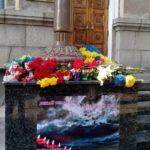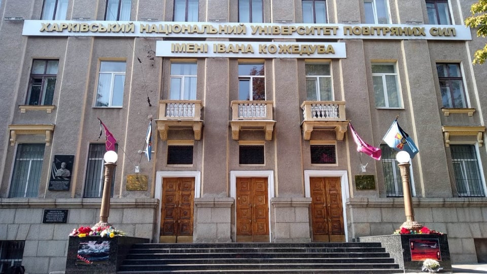 До речі, біля фасаду видового вишу ще зранку створено «місце скорботи», до якого приходять захисники України чи просто пересічні громадяни. Люди несуть туди квіти та вшановують пам’ять військовослужбовців Збройних Сил України.