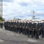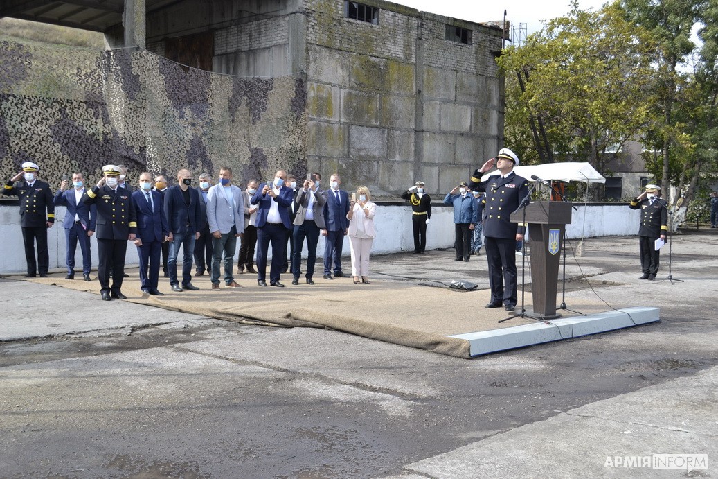 — На виконання рішення військово-політичного керівництва України в порту Південний урочисто піднімаємо Військово-Морський Прапор. Цей захід є свідченням зміцнення позицій українського флоту та посилення наших спроможностей в Чорному морі, — сказав командувач Олексій Неїжпапа. — Як зазначив американський військовий морський теоретик та історик Альфред Мєхєн: «Військово-морська могутність починається з берега». Тому без будь-якої інфраструктури не можна побудувати флот. Тільки з берега починається успіх у морі.