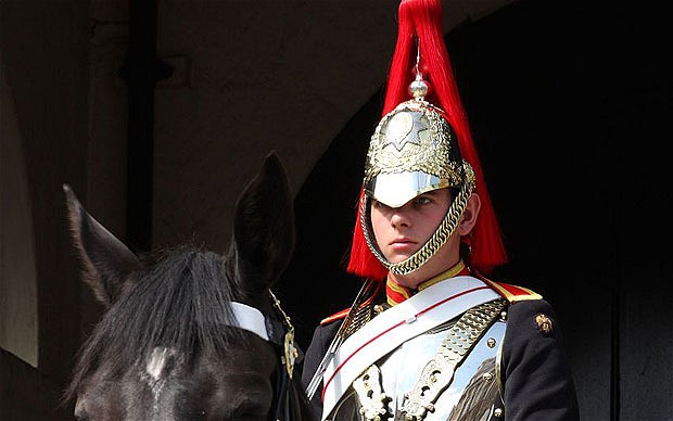 Кірасирські шоломи з плюмажем носять ще 2 полки Королівських гвардійців.