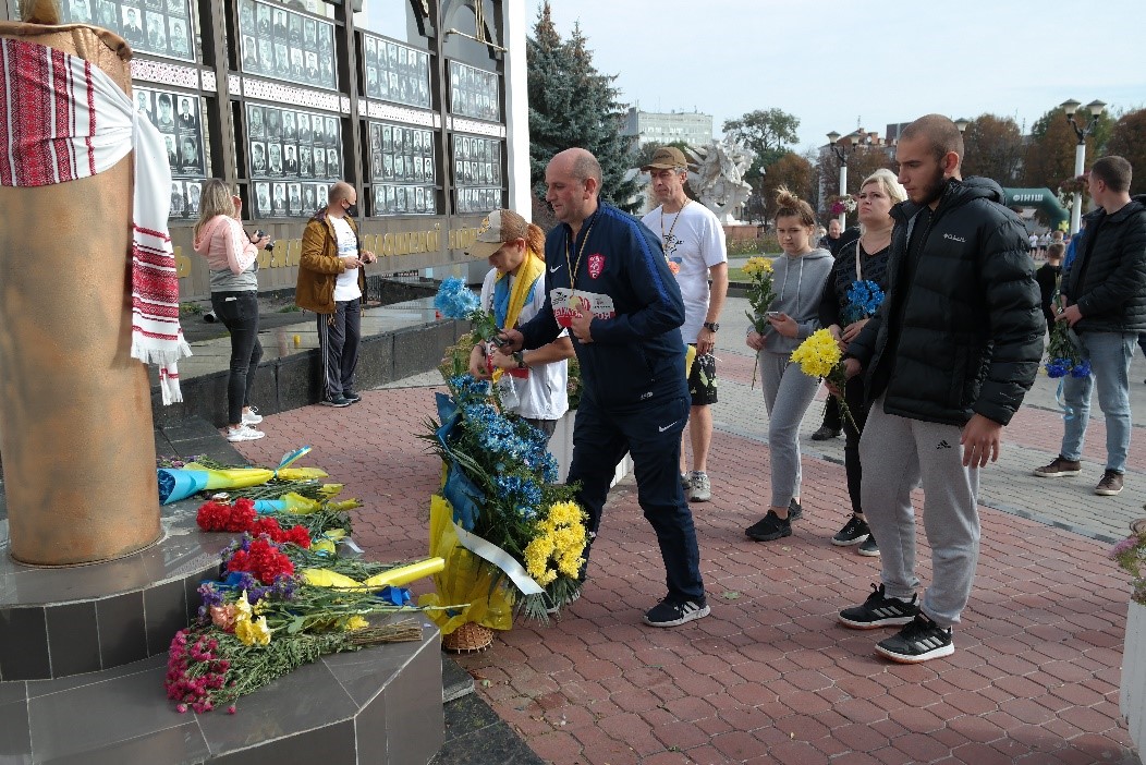 На фініші на площі Незалежності учасники забігу вшанували хвилиною мовчання пам’ять 216-ти загиблих захисників Хмельниччини та поклали квіти до меморіальної стели. На згадку про участь у забігу всіх учасників нагородили пам’ятними медалями.