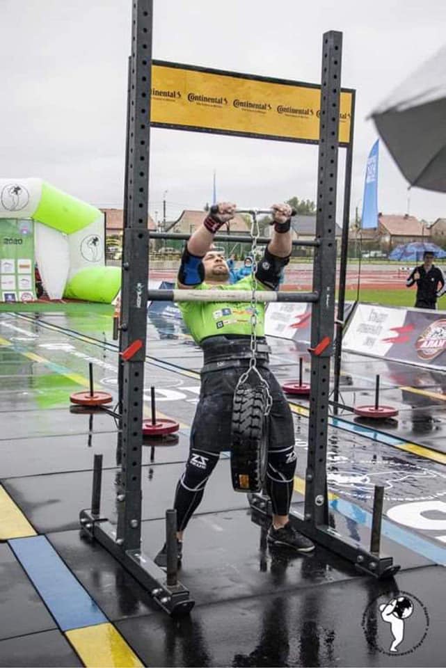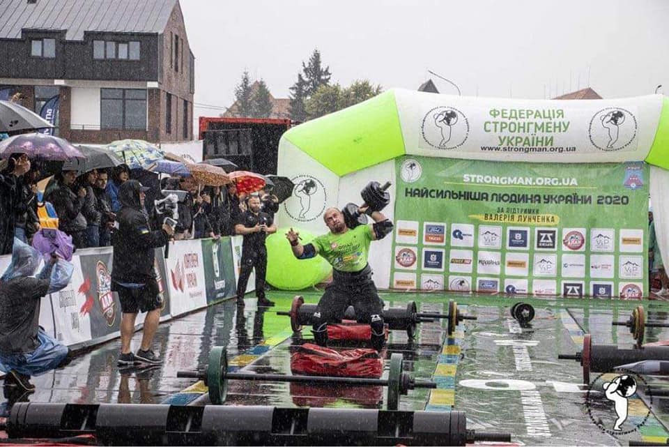 – Змагання складались з шести вправ, – розповідає офіцер. – Перша – «Трак-пул», тяга вантажівки вагою 9 тонн, в якій мені вдалося показати лише 5-й результат з 8 учасників. Вправа специфічна, де власна вага має важливу роль, чого мені наразі бракувало. Наступною вправою була естафета: біг 20 м з мішком 100 кг та перенесення коромисла вагою 340 кг на 20 м на плечах. Тут я почав скорочувати відрив, показавши 4-й результат. Третім випробуванням стала естафета «Оверхед»: за 60 секунд потрібно було підняти 6 снарядів над головою: аксель вагою 110 кг, гантель вагою 80 кг та колоду вагою 120, після чого – аксель – 130, гантель – 90 та колоду – 140 кг. Погода того дня на Закарпатті стояла дощова, а змагалися, як і завжди, просто неба. Дощ не припинявся, всі снаряди були слизькі, що внесло сумні корективи до результату вправи. Але я був єдиний, хто підняв 5 снарядів – на шостий просто не вистачило часу.