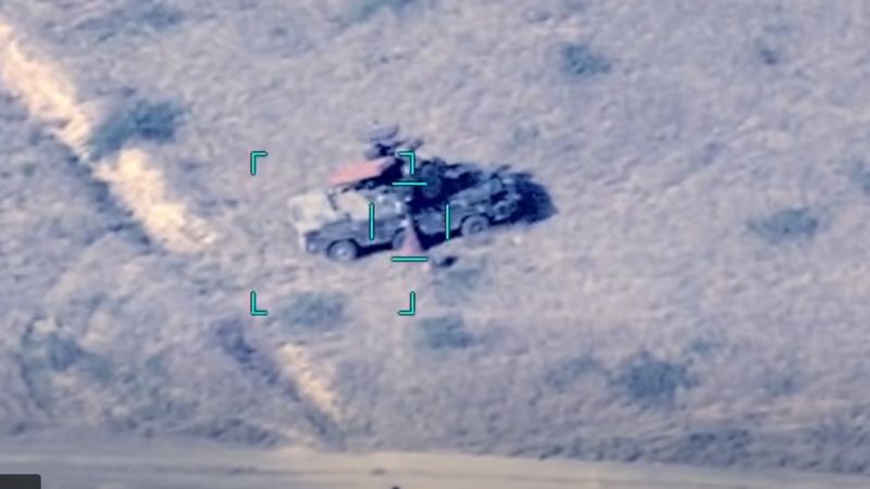 Міністерство оборони Азербайджану поширює кадри, що знімають дрони-розвідники, які забезпечують цілевказування, відео з камер ударних безпілотників або записи, що передали «дрони-камікадзе», – так іноді називають баражувальні боєприпаси. Це також ударні безпілотники, але вони знищують цілі, не стріляючи по них, а падаючи зверху і вибухаючи.