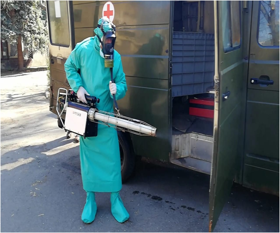 Новітні технології застосовуються також і під час дезінфекції. Так, для проведення швидкої, високоефективної та якісної дезінфекції пересувні санітарно-епідеміологічні групи забезпечені аерозольними генераторами холодного туману. На відміну від звичайних розприскувачів, генератори холодного туману мають вищу ступінь дисперсності, завдяки чому дезінфекційні розчини можуть потрапляти у найменші щілини та важкодоступні місця. Цей метод може застосовуватись для обробки приміщень, автомобілів та фортифікаційних споруд.