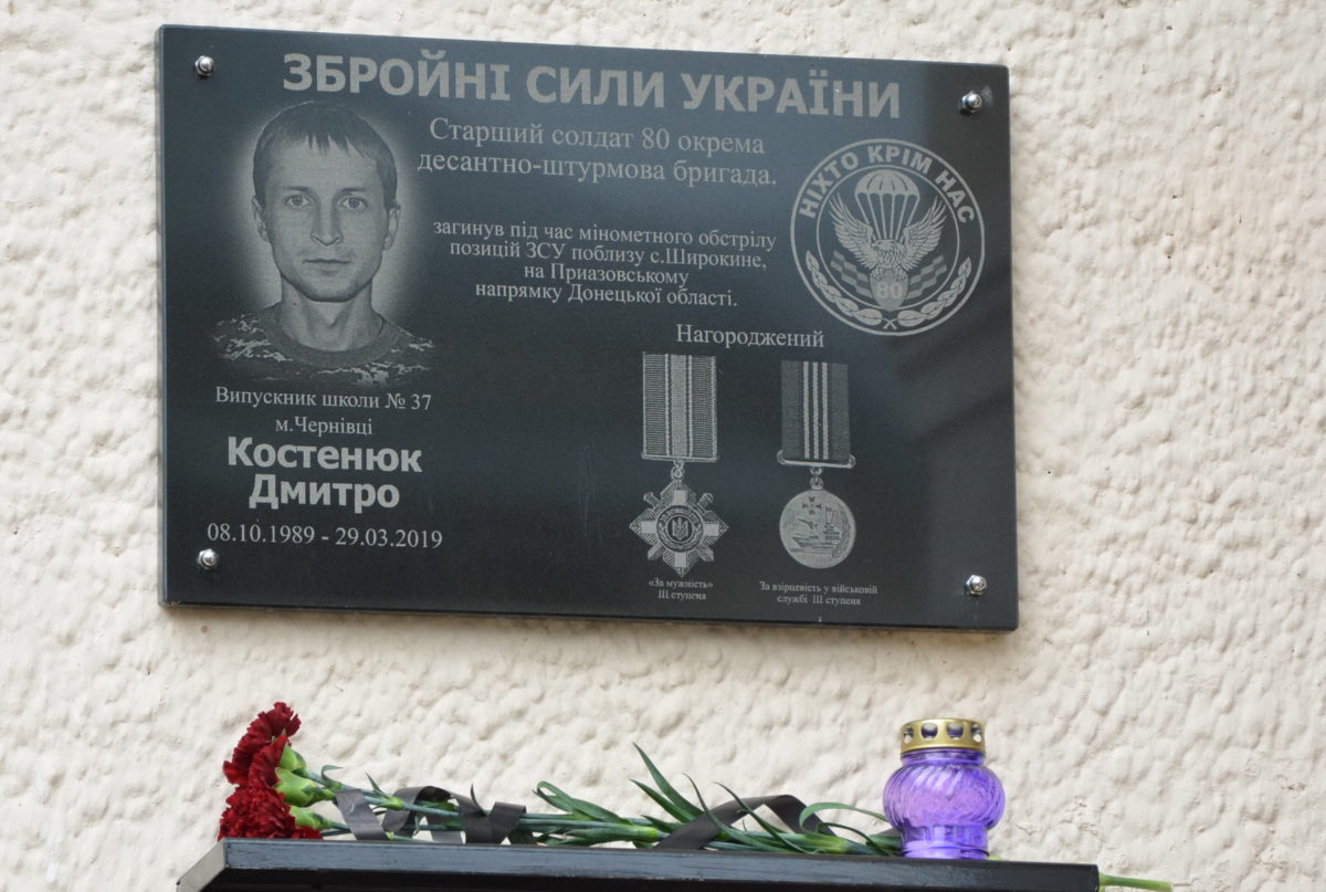 Біля входу до загальноосвітньої школи І-ІІІ ступенів № 37 меморіальну дошку встановили до дня народження старшого солдата Дмитра Костенюка, який свого часу тут навчався. Військовослужбовець 80-ї аеромобільної бригади загинув 29 березня 2019 року під час виконання бойового завдання в районі проведення ООС. У нього залишилось двоє дітей 2015 та 2016 року народження. Посмертно Указом Президента України він нагороджений орденом «За мужність» ІІІ ступеня.
