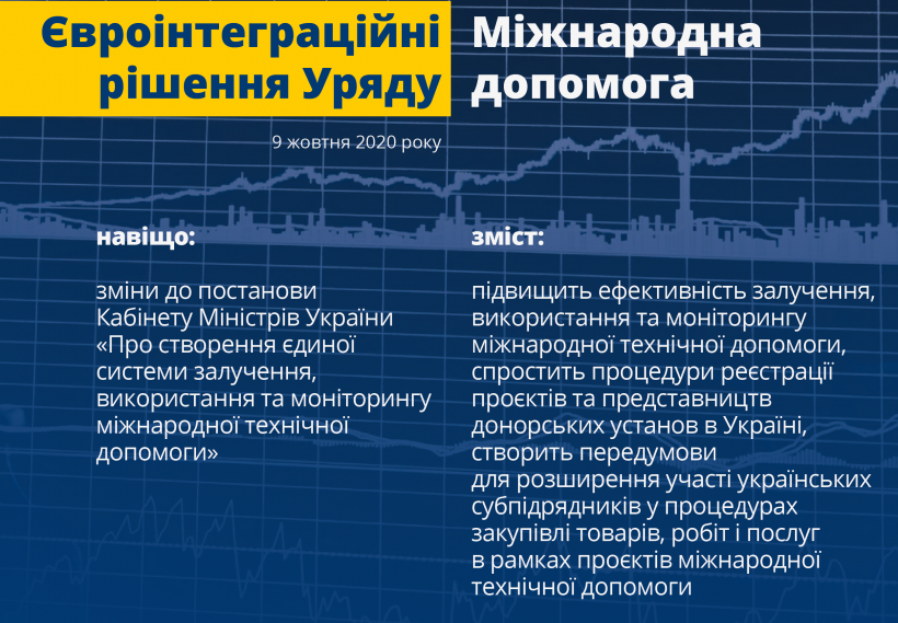 Схваленою постановою зменшуються бюрократичні процедури для реєстрації та реалізації проектів міжнародної технічної допомоги. Зокрема, розширюється перелік органів, які можуть виступати бенефіціарами проектів; удосконалюється процедура звільнення від оподаткування, що сприятиме більш широкій участі українських виробників та постачальників у процедурах закупівель за рахунок коштів МТД; спрощуються процедури державної реєстрації або перереєстрації проектів та реєстрації представництва донорської установи; визначаються механізми та строки погодження планів закупівлі, а також зменшується паперовий документообіг.