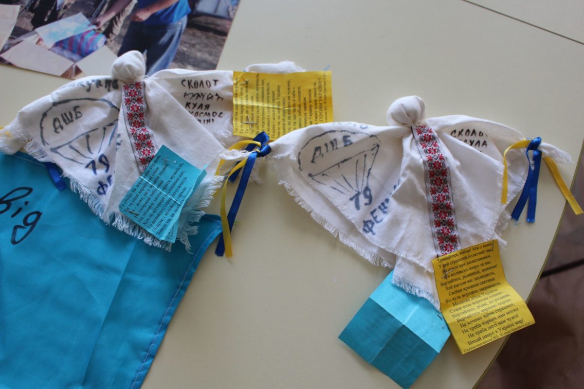 – А наші діти в цей час на фронт відправляли ангелочків, зроблених власноруч із тканини. І от коли Олександр був на передовій, то його підрозділ отримав їх. Він каже: о, так це ж моя школа! І попросив, щоб йому дали два таких ангелочки. Увесь час, поки був в АТО, Олександр носив їх біля серця. Коли приїхав до Скадовська і прийшов на зустріч до школи, то приніс цих ангелочків і каже: а тепер я передаю їх вам до музею, вони побували на передовій. Те, що ви робили для нас, не минуло дарма. Це берегло нас там, – розповідає Лора Білоус.
