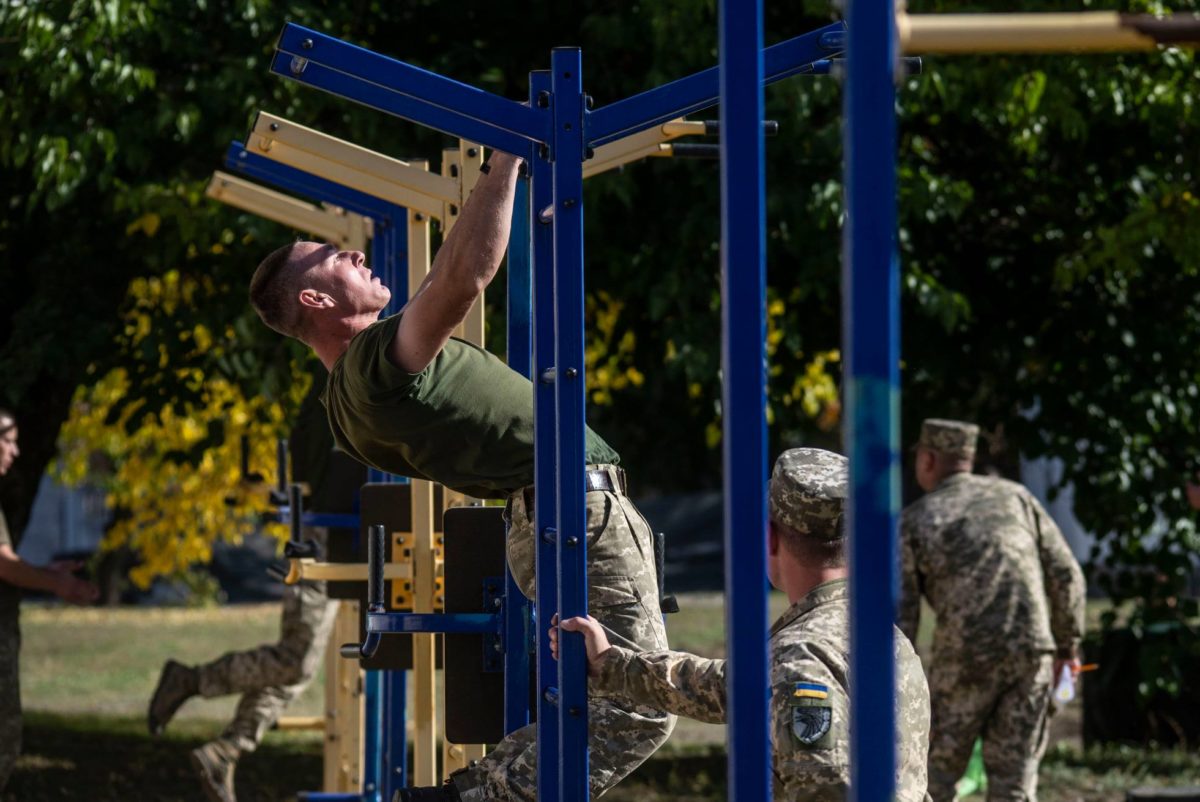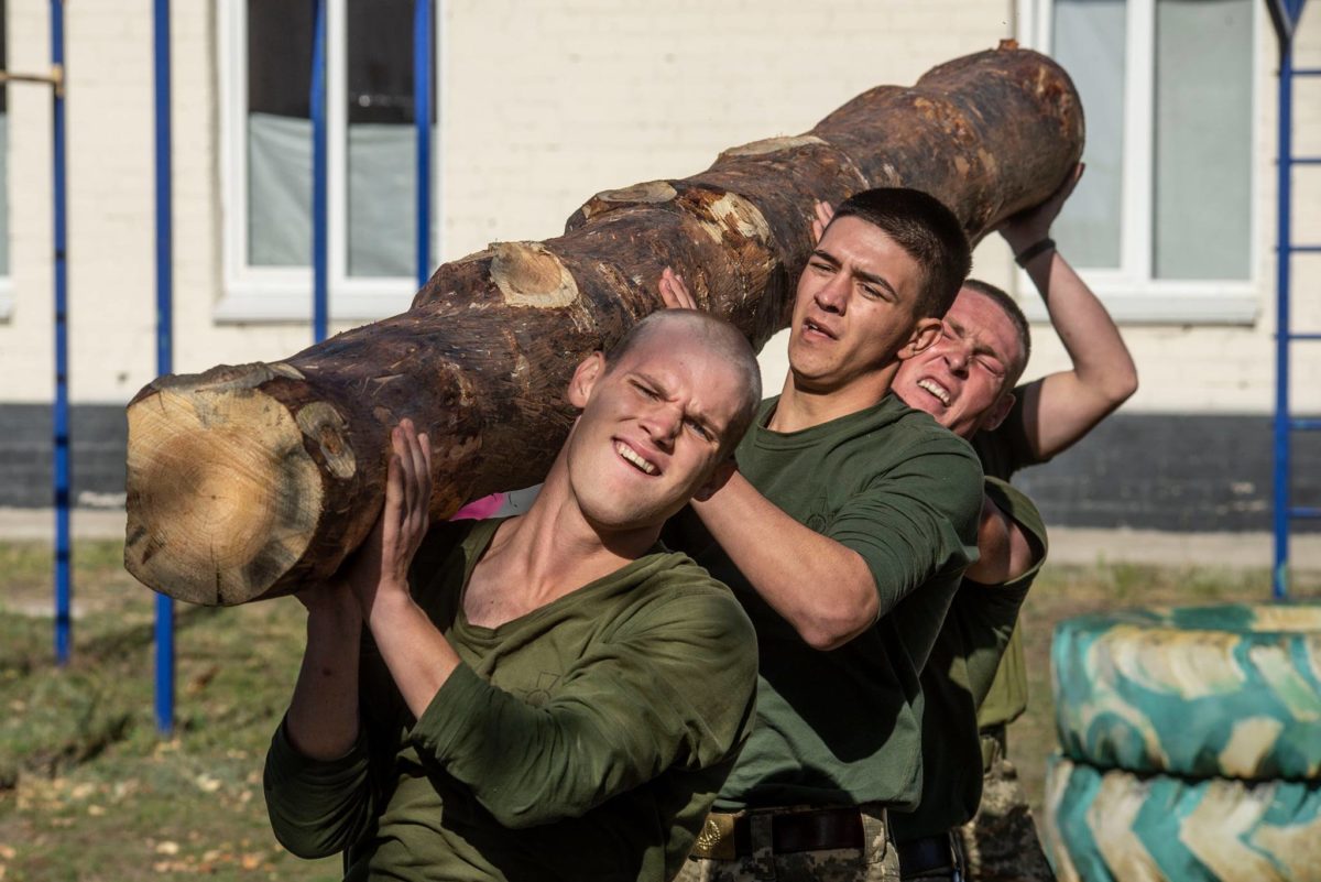 Команди з чотирьох військовослужбовців змагались у виконанні на швидкість чотирьох силових вправ. Учасники мали 100 разів підтягнутися, зробити 140 стрибків на шину, 40 разів підняти над собою 60-кілограмову колоду та на 60 повторів виконати вправу на прес, висячи на перекладині й доторкаючись до неї ногами.