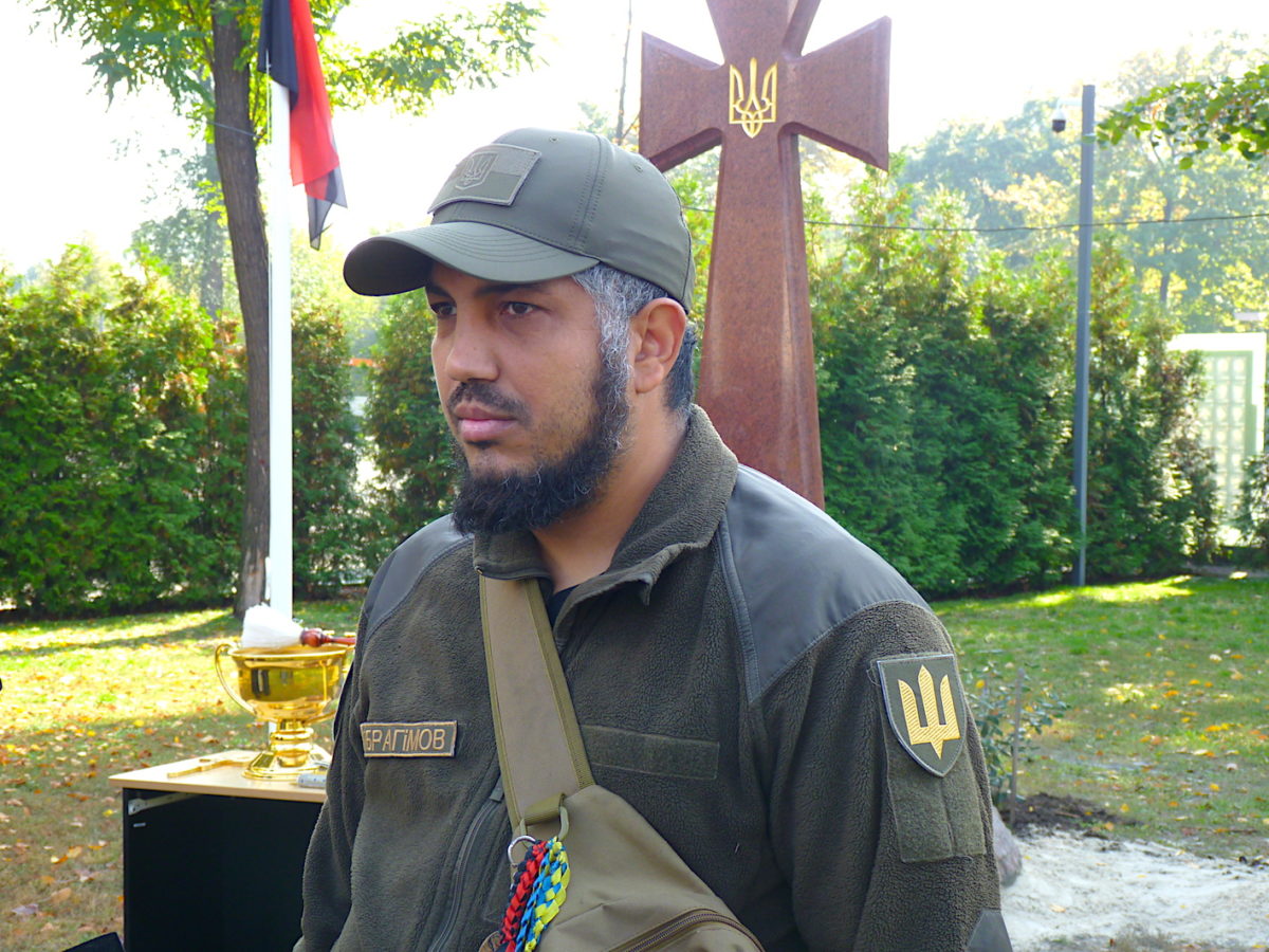 – Сьогодні прийшов вшанувати пам’ять воїнів, які у ті дні не вагаючись стали на захист України, – розповів Теймур Ібрагімов. – Саме тут, біля будівлі облдержадміністрації, я разом зі своїми побратимами складав Присягу на вірність Україні. Потім було бойове злагодження й уже у травні 2014-го ми воювали на фронті. Далі – три важких роки боїв. На жаль, у перші місяці війни мали дуже багато поранених і загиблих героїв. Я воював у батальйонах «Крим» та «Айдар», був командиром танка у складі окремої танкової бригади. В одному з бойових зіткнень з ворогом сам зазнав поранення. Я інвалід війни, але знаю, що все це недаремно. Україна – це наша земля, яка жила і житиме завжди.