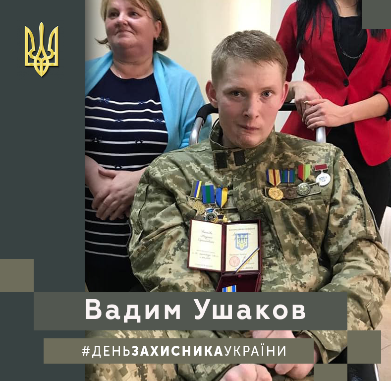 Життя Вадима Ушакова змінилося 12 квітня 2016 року, коли він тримав бій на Авдіївській промзоні. Був важко поранений. По дорозі в госпіталь у нього зупинилося дихання, що призвело до ускладнень. Нині він заново вчиться жити…