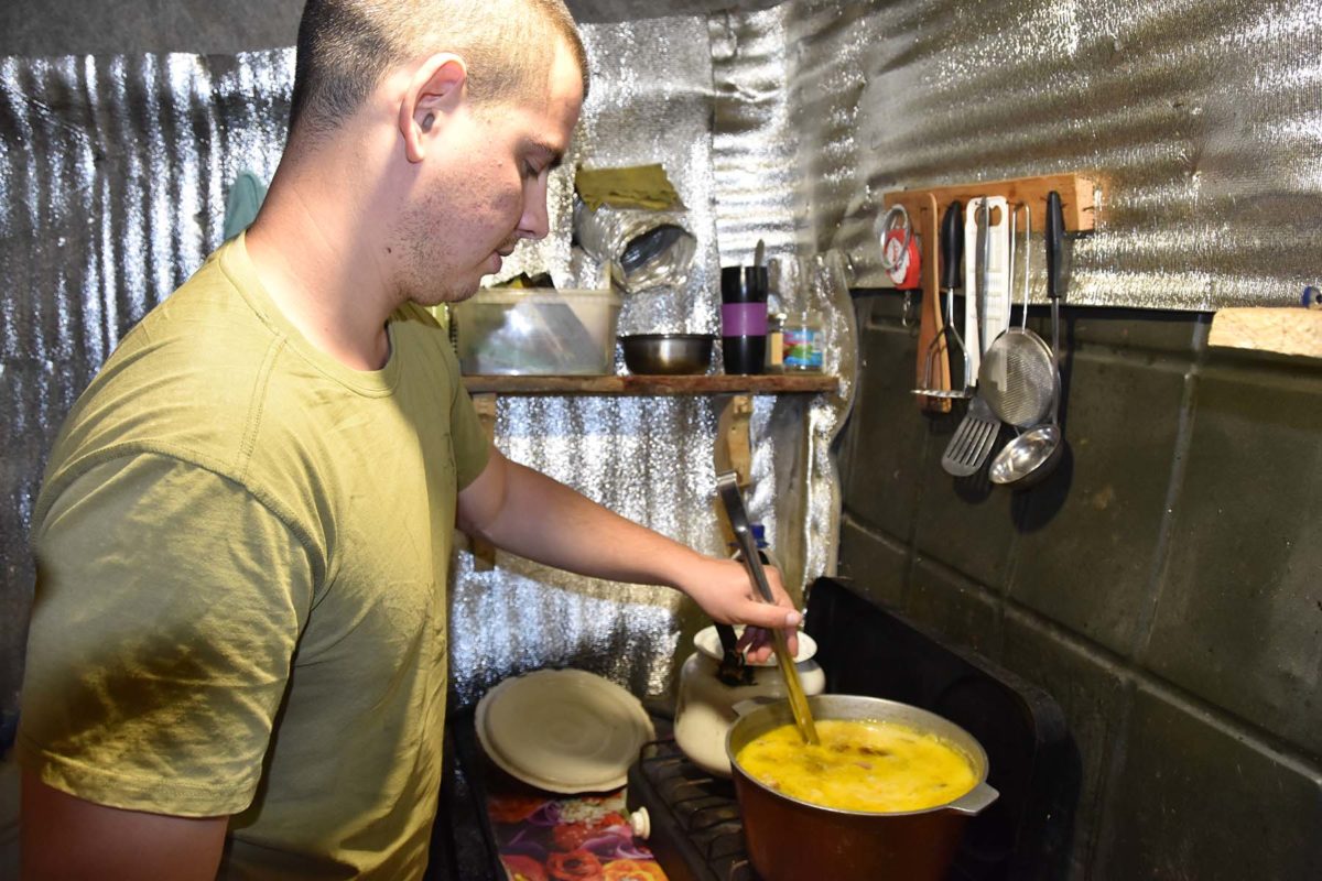 – Починав з елементарного, тепер все знаю сам і можу навчити будь-кого куховарської справи. Важливо в цій роботі – настрій, позитивна енергетика, і, що б ви думали. Правильно – прагнення перемогти у війні, міцно тримаючи ніж, половник і купу приправ в обоймі. Я, доки не став сюди, до кухарського столу, думав: «Є поїсти – добре, немає – переб’ємося тушняком чи мівіною якоюсь. Та так довго не протягнеш. Робота кухаря – щастя і сила підрозділу», – впевнений Богдан, який зранку куховарить, а вдень, як і інші, чатує на посту та спостерігає за ворогом.