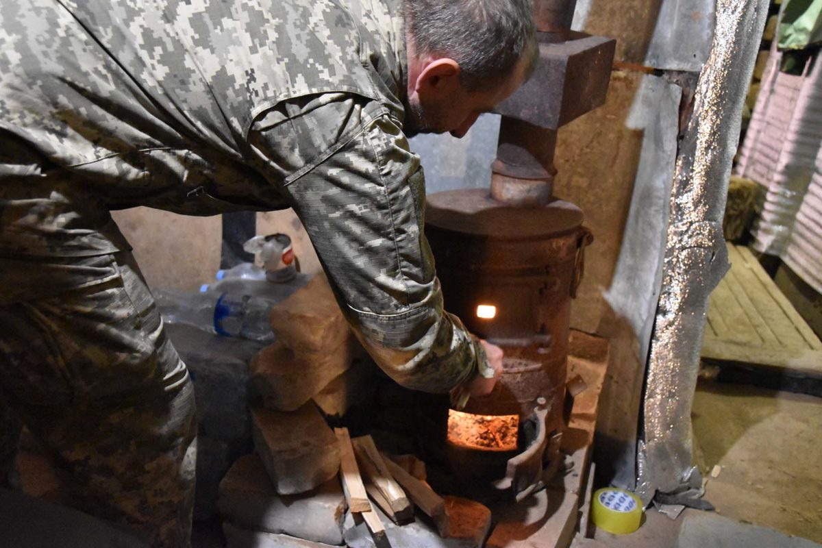 — А що чи кого чекати? Адже те, як тепло й комфортно облаштуємо свої бліндажі, спостережники та зустрінемо морози, напряму залежить виключно від нас, — каже командир одного з ротних опорних пунктів на ім’я Олександр, який виконує бойові завдання в районі села Катеринівка. — Дрова є — буде тепло! Козаки у мене молодці, підганяти зайвий раз не треба. Тут працює-служить команда, все, як у мурашнику, без діла ніхто не сидить. На бойових постах спостерігаємо за противником, завершуємо сезонні роботи на техніці, дообладнуємо житлові, господарські й побутові бліндажі, перевіряємо на безпечність роботу «буржуйок», ріжемо й рубаємо дрова. Десь продумуємо наперед водовідстійники чи канави для стоку, аби в траншеях вода не стояла, якщо задощить, — ведучи нашу групу від позиції до позиції, розповідає ротний.