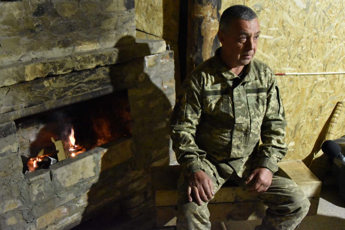 Завітавши наступного дня до захисників переднього краю оборони в районі Кримського, ми згадали про того, вчорашнього Михайла із Закарпаття ще раз. Річ у тім, що тут познайомились з його 51-річним тезкою, земляком і теж кулеметником, який в одному з бліндажів, а саме у командирському, вимурував камін.