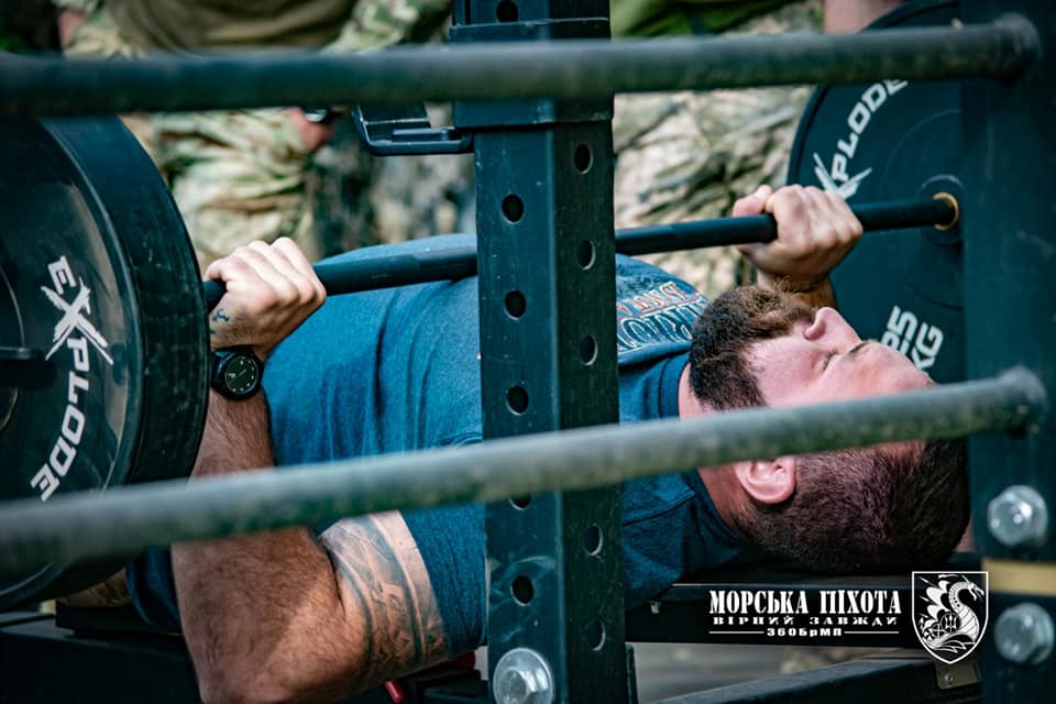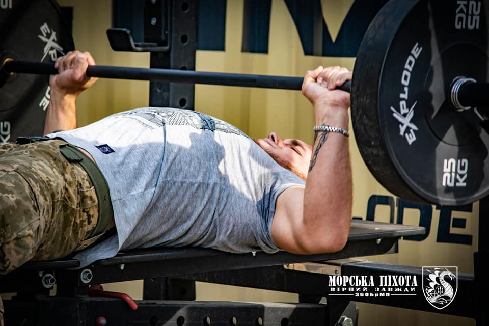 – Багатоповторний жим – дисципліна пауерліфтингу, в якому головним завданням є вижимання штанги лежачи на горизонтальній лаві від грудей на максимальну кількість повторень, – розповів старший помічник відділу підготовки майор Олександр Одегов. – Це перші змагання такого виду в бригаді морської піхоти.