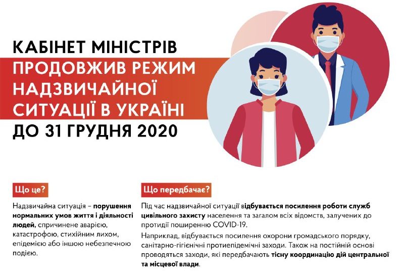 Кабінет Міністрів продовжив режим надзвичайної ситуації внаслідок пандемії коронавірусу в Україні до 31 грудня 2020 року.