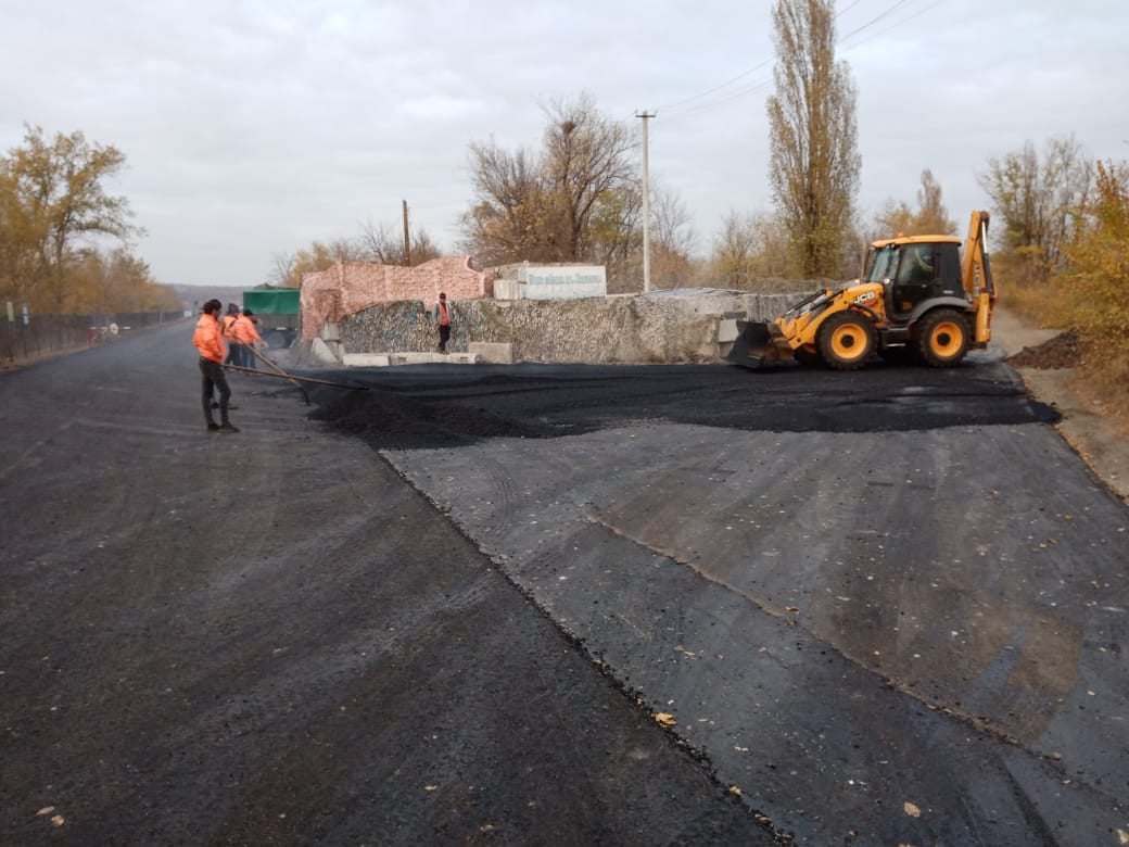 Працівники одного із підприємств продовжують укладати асфальтовий шар на перехресті доріг від Золотого в Катеринівку та траси в напрямку населеного пункту Первомайськ.