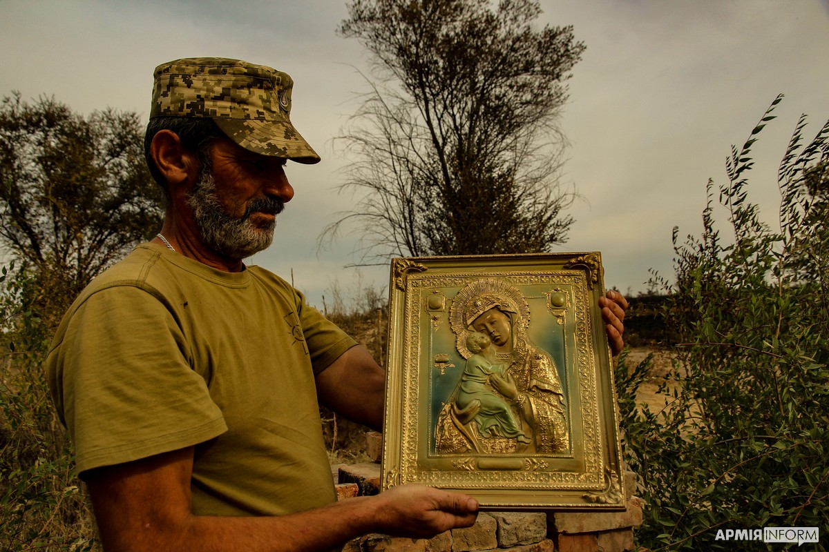 — Коли вогонь почав підходити до нас, ми винесли ікону з бліндажа, щоб вона не згоріла, — продовжив Анатолій Іванович. — І тоді сталось диво — вогонь обійшов наші позиції навколо!