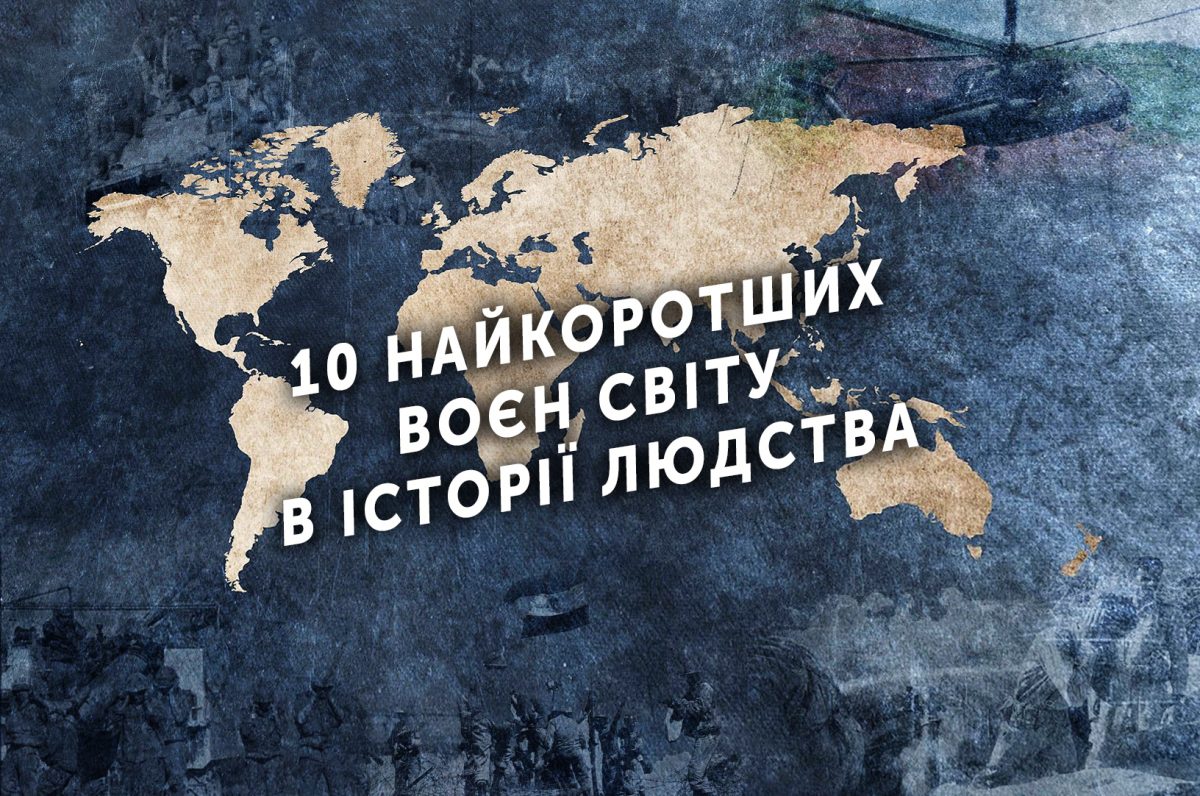 Людство завжди воювало – за природні ресурси, їжу, корисні копалини, за владу, території тощо. Із розвитком цивілізації вдосконалювалася зброя, техніка ведення бойових дій, а також і вміння вести перемовини. Тож з плином часу деякі війни тривали надто короткий період у історії. Однак без жертв бойових дій суспільство жити поки що не навчилося. Пропонуємо вам підбірку з десяти найкоротших воєн у світі в історії людства.
