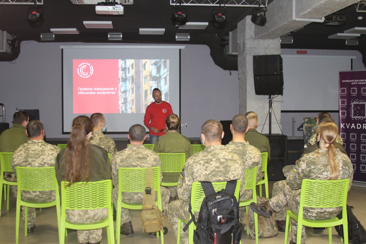 – Військовослужбовці виконують чималий спектр завдань, що вимагають від них знання норм міжнародного гуманітарного права, – відзначає пан В’ячеслав, – Про це, власне, ми і говоримо під час нашого тренінгу, моделюючи різноманітні ситуації, аналізуючи їх та пропонуючи правильні з огляду на міжнародне право рішення. Також для майбутньої роботи ми надаємо учасникам тренінгу і методичну літературу.