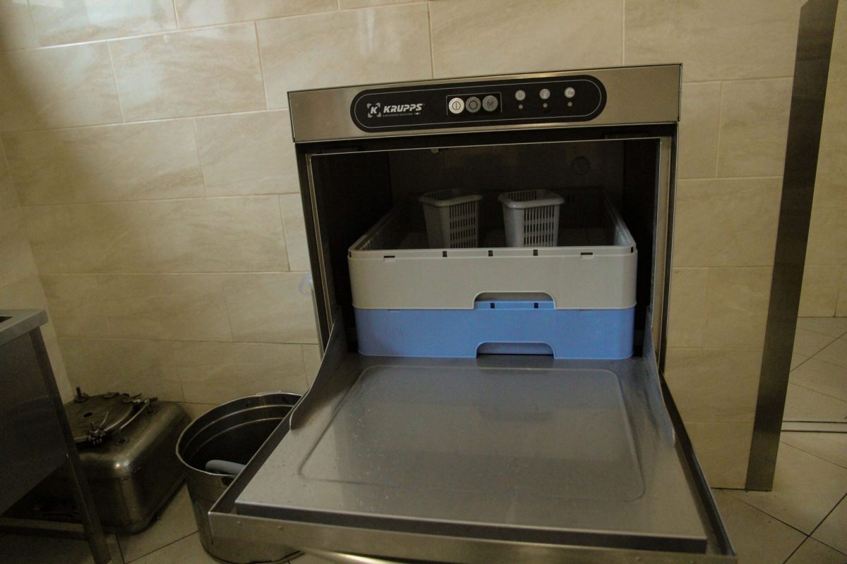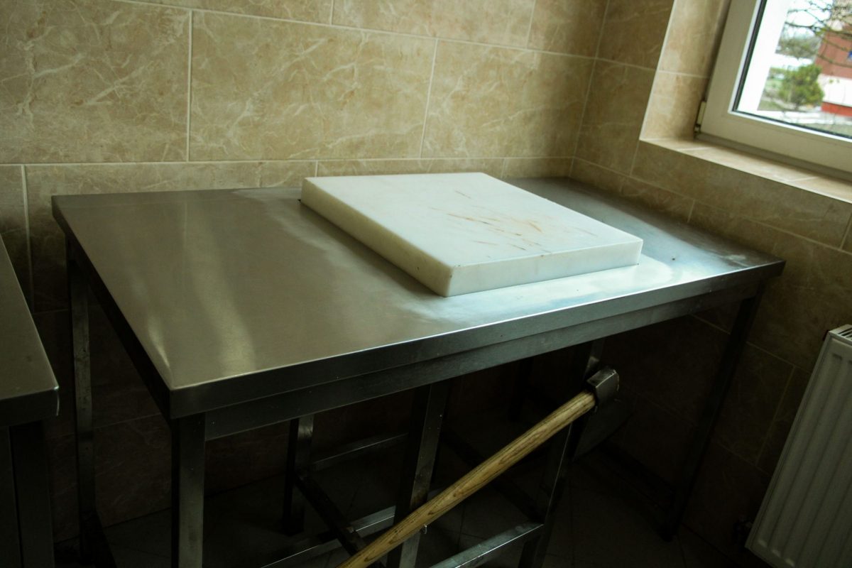 Окремо і дуже ретельно тут ставляться до гігієни обробки продуктів і чистоти приміщень. От, скажімо, для розподілу м’яса тут уже немає звичної дерев’яної колоди, яку неможливо продезінфікувати. Її замінено сучасним пластико-керамічним каменем, який легко мити, а за потреби верхній шар, що вже відпрацював своє, просто зчищається шліфувальним каменем. У всіх цехах встановлено спеціальні лампи-капкани для москітів і мух. А посуд миє сучасна посудомийна машина, де він не лише дезінфікується, а й обдається парою.