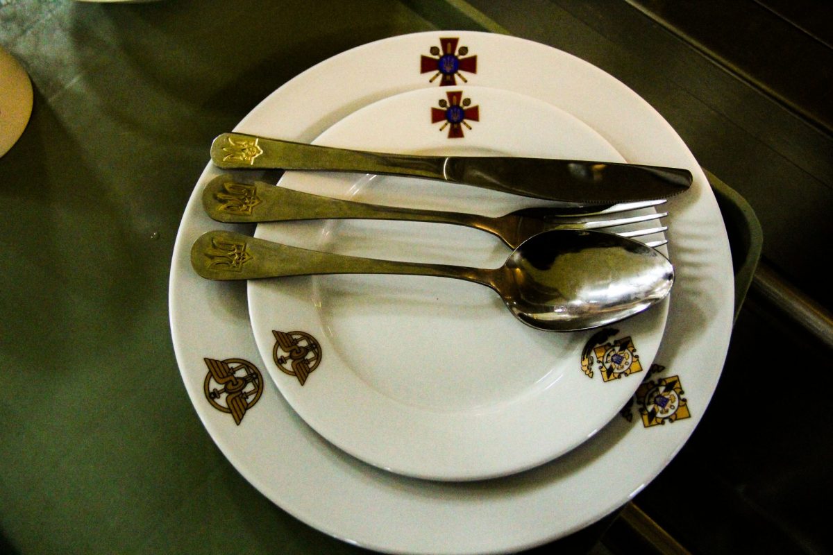 Без перебільшення, це перша, за понад тридцятирічний досвід служби, військова їдальня, яка має іменний посуд! Так! Саме власний посуд із власними емблемами, а не звичайний чи з загальновійськовими символами. Горнятка, тарілки як перших, так і для других страв прикрашені емблемами військової частини. Диво!