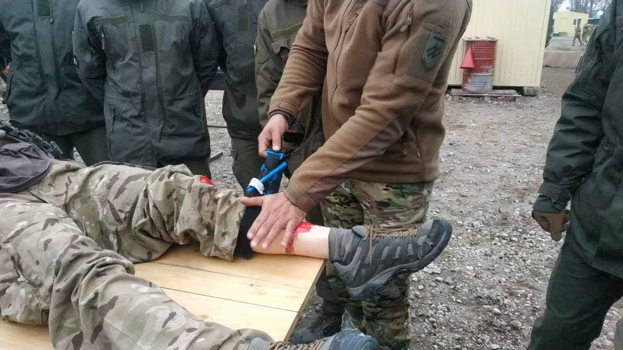 Після евакуації з поля бою слід оглянути пораненого на наявність масивних кровотеч, які часто є причиною смерті. Кожен військовий повинен вміти її зупинити як собі, так і побратиму впродовж 30 секунд, адже за пошкодження, наприклад, стегнової артерії, цього часу достатньо, щоб стекти кров’ю й померти. Кожен курсант накладав кровоспинний турнікет під наглядом інструктора за всіма правилами. Коучі постійно використовували фактор стресу: йде лекція, раптом постріл, команда впасти на підлогу і накласти турнікет на кінцівку. Той, хто не вклався у норматив — отримував покарання у вигляді фізичних вправ.